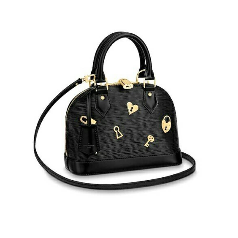 Charming is indeed the word for the Alma BB Love Lock edition. Crafted from signature Epi leather, this trend-setting bag is studded with finely wrought Monogram Flowers, padlocks and keys: all symbols of the House – and of romance. The Love Lock story plays out this season on an exclusive capsule collection of handbags and leather goods.