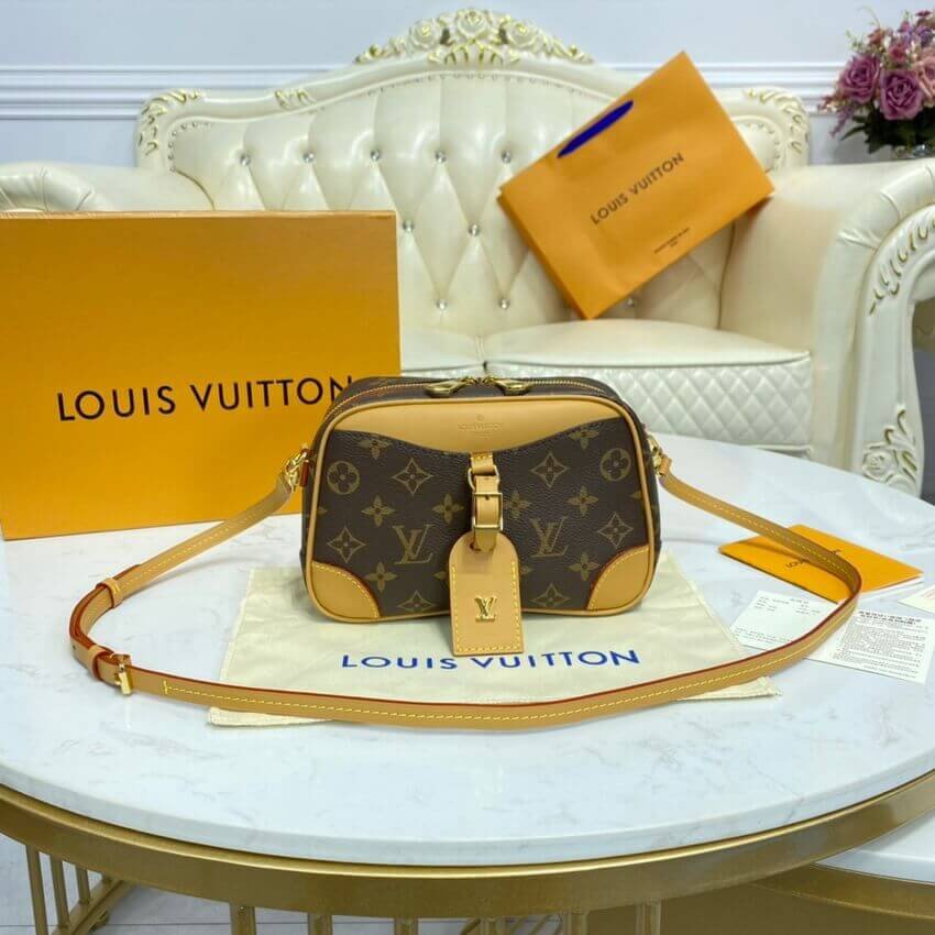 For Fall-Winter 2020, Nicolas Ghesquière introduces the Deauville Mini handbag, a smaller version of Louis Vuitton’s classic Deauville bag. This adorable camera bag in Monogram canvas with natural leather trim will bring a touch of retro chic to any look. Compact and lightweight, it has an adjustable leather strap for shoulder and cross-body carry.