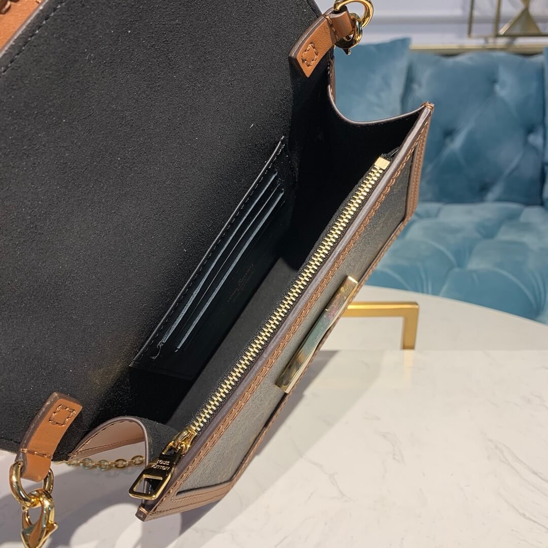 Combining Monogram canvas, the Dauphine Chain Wallet reprises all the signatures of the iconic Dauphine collection: the vintage look, the calf-leather trim and the LV Circle clasp. This neat yet spacious wallet features a removable gold-tone chain, enabling it to be carried in several different ways.