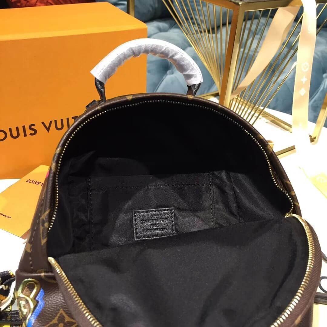 From the Love Lock capsule for Spring 2019, the Palm Springs backpack is adorned with lock, key and flower motifs: emblems of the House and symbols of lasting love. The colorful metallic designs are expertly fused onto Monogram canvas, for a surprising 3D effect. Charming and collectible, this mini model makes a romantic Valentine’s present.