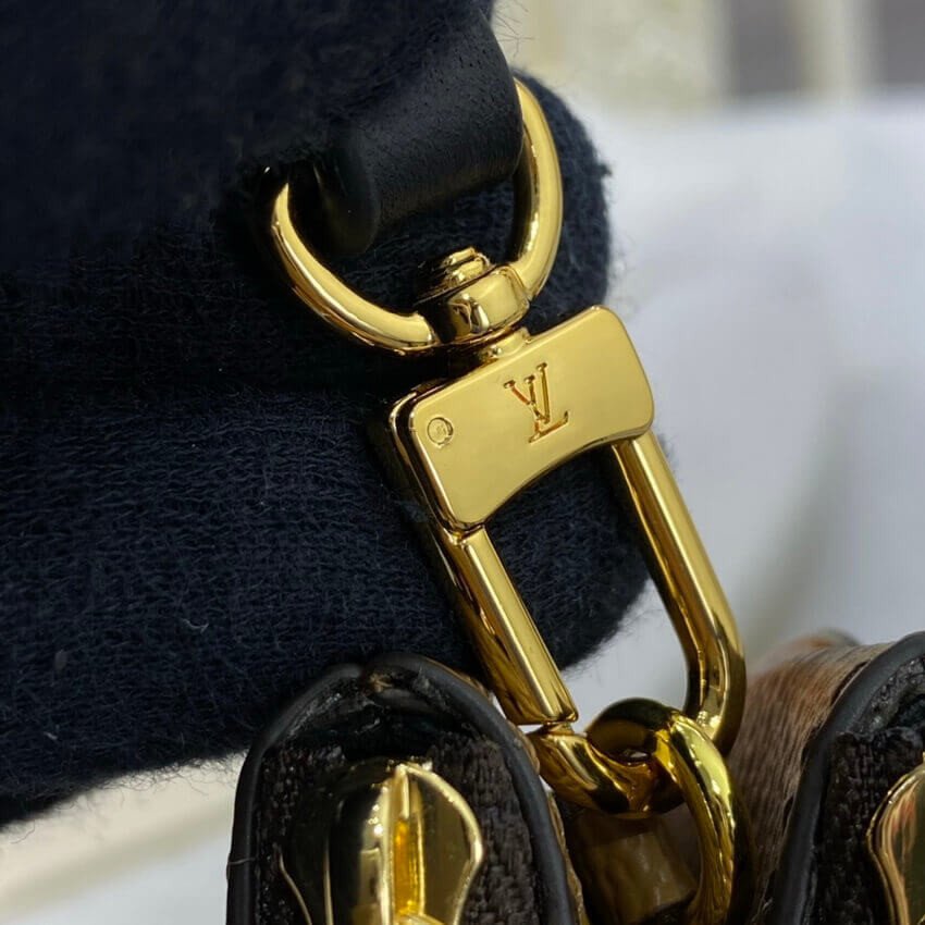Timeless Monogram and on-trend Monogram Giant Reverse canvas combine on the Double Zip Pochette, which comes with a removable, adjustable leather strap for multiple carry options. This versatile pouch features two zipped pockets to organise everyday essentials, one of which contains three card slots. The middle space offers easy access to items like tickets.