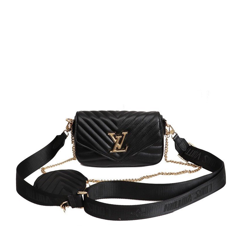 Arriving potentially in June 2020 is the Louis Vuitton New Wave bag in the popular Multi-Pochette format. This is the third version of the popular bag, it also was featured in the denim patchwork in Spring 2020 for a capsule collection. The new bag will be featured in four colors, Black, Hunter Green, Pink and White. It features the signature canvas strap but in the updated cursive logo font with the coin purse in the new wave chevron design.