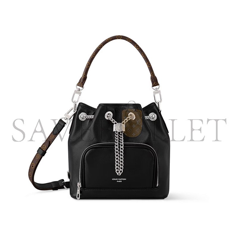 1 chain drawstring with gliding LV Circle to adjust the bag opening