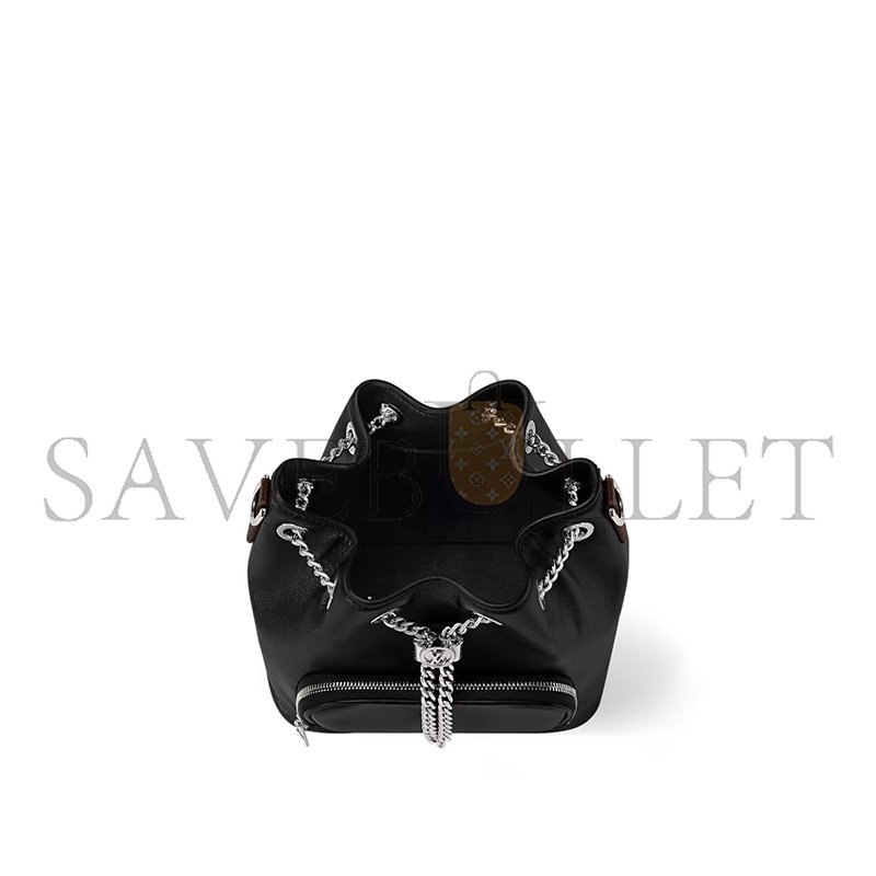 1 chain drawstring with gliding LV Circle to adjust the bag opening
