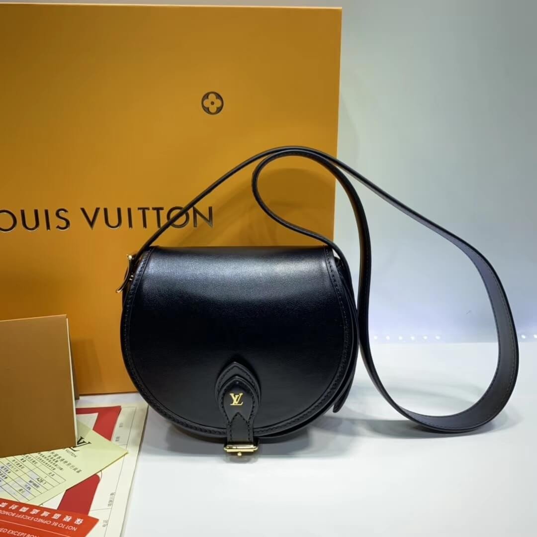 This new version of the compact Tambourin handbag is made from smooth calf leather. Easy to open thanks to the leather buckle, this light-weight bag has a practical inside pocket. It can be worn over the shoulder or cross-body thanks to its adjustable leather strap.