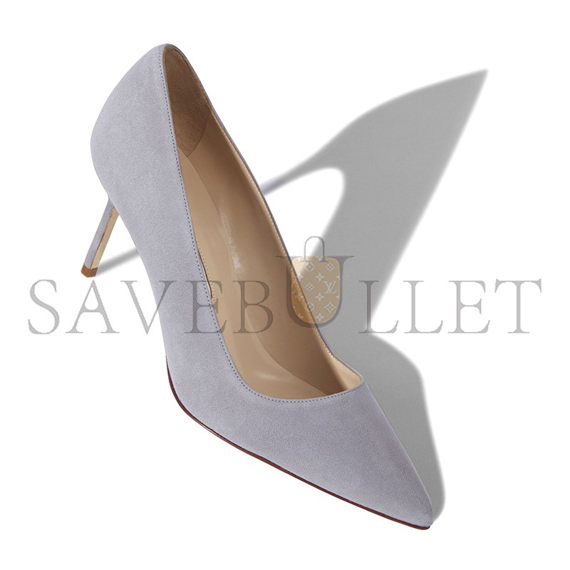 MANOLO BLAHNIK BB 70 LIGHT GREY SUEDE POINTED TOE PUMPS 9XX-0415-0018