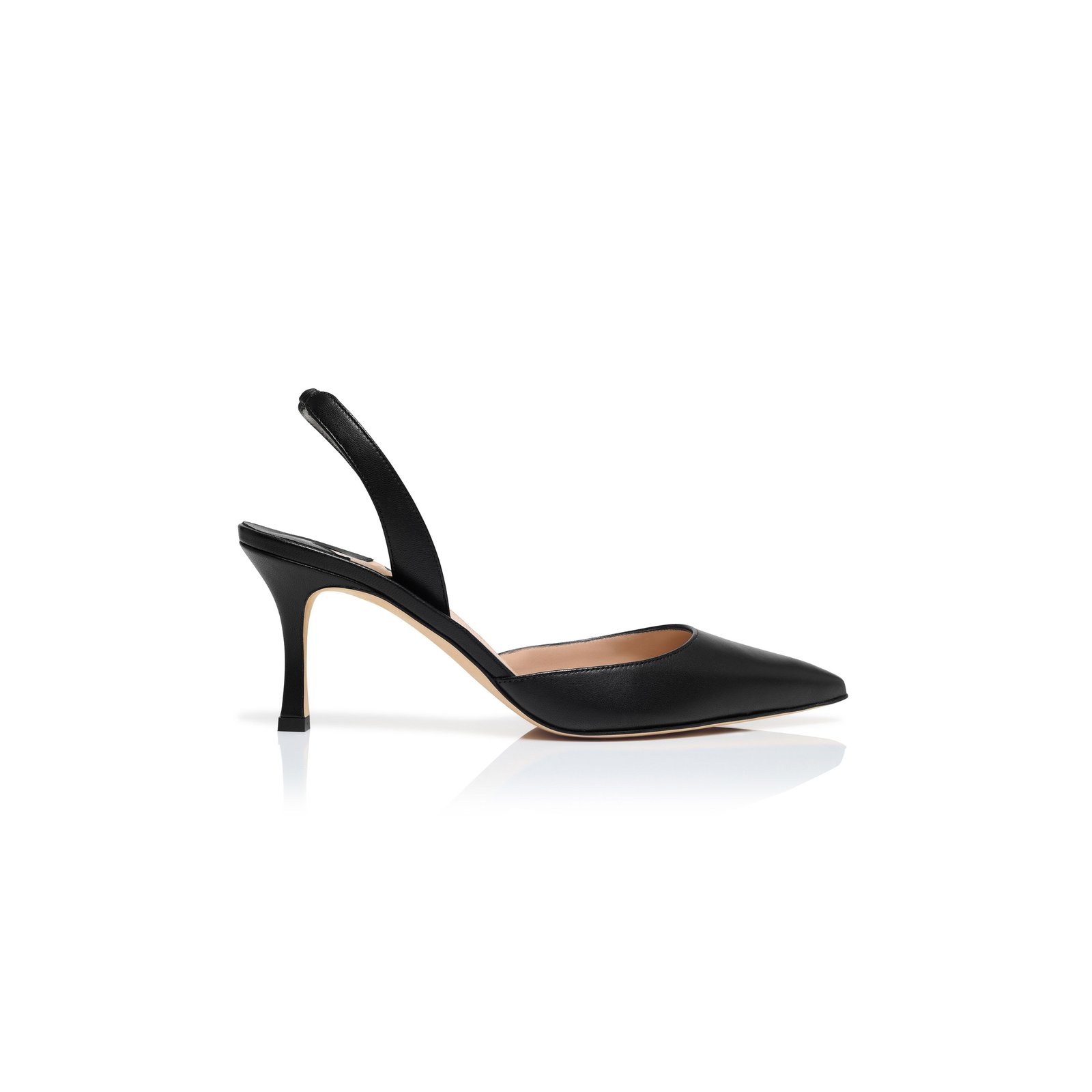 MANOLO BLAHNIK CAROLYNE 70 BLACK NAPPA LEATHER SLINGBACK PUMPS 9XX-0757-0018
