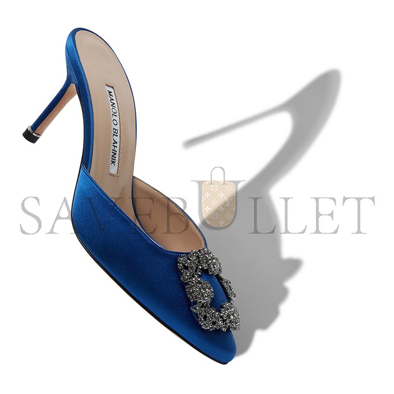 MANOLO BLAHNIK HANGISIMU BLUE SATIN JEWEL BUCKLE MULES 9XX-0726-0029