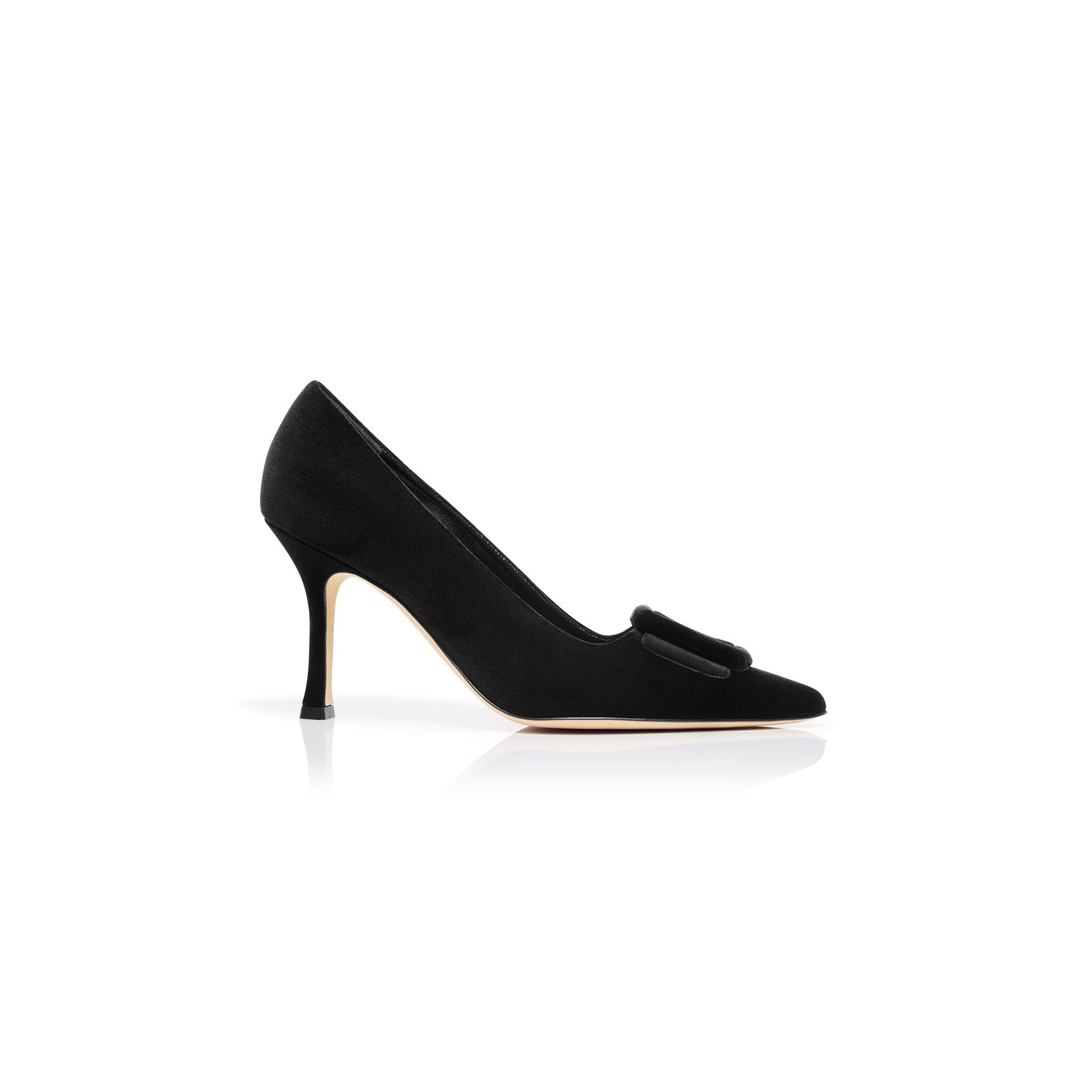 MANOLO BLAHNIK MAYSALEPUMP 90 BLACK VELVET BUCKLE DETAIL PUMPS 324-2862-0006