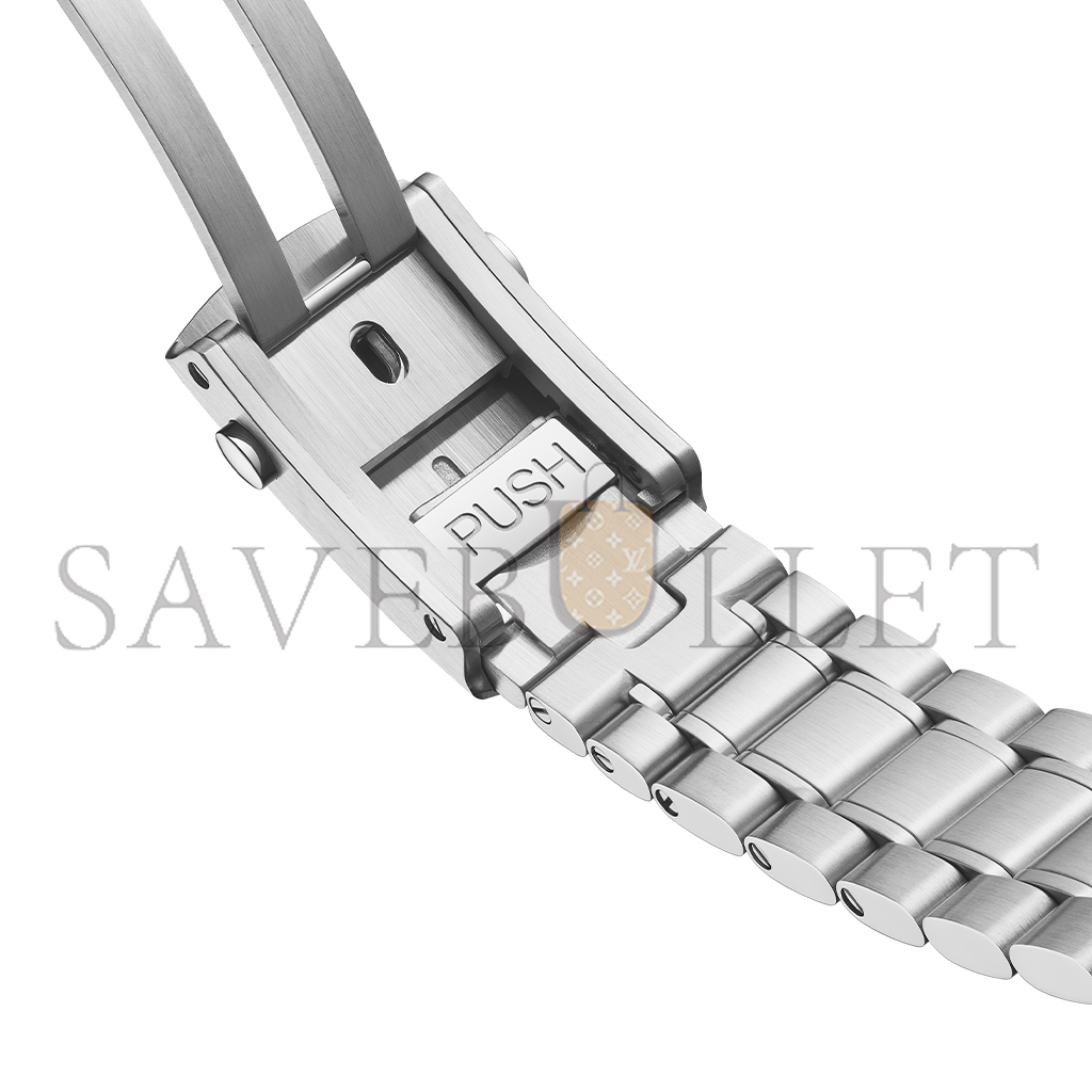 On the white dial, there is a distinctive racing style minute-track which gives the watch its name. There are also two subdials with blackened applied rings as well as a 6 o��clock date window that blends with the colour of the dial. The hour and minute hands and arrowhead indexes are blackened with white Super-LumiNova. Orange touches include the “Speedmaster” name and the tip of the central seconds hand.