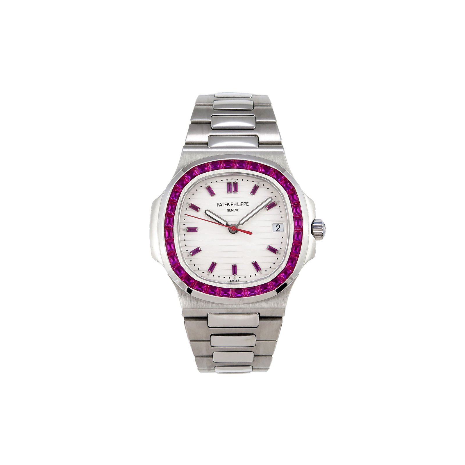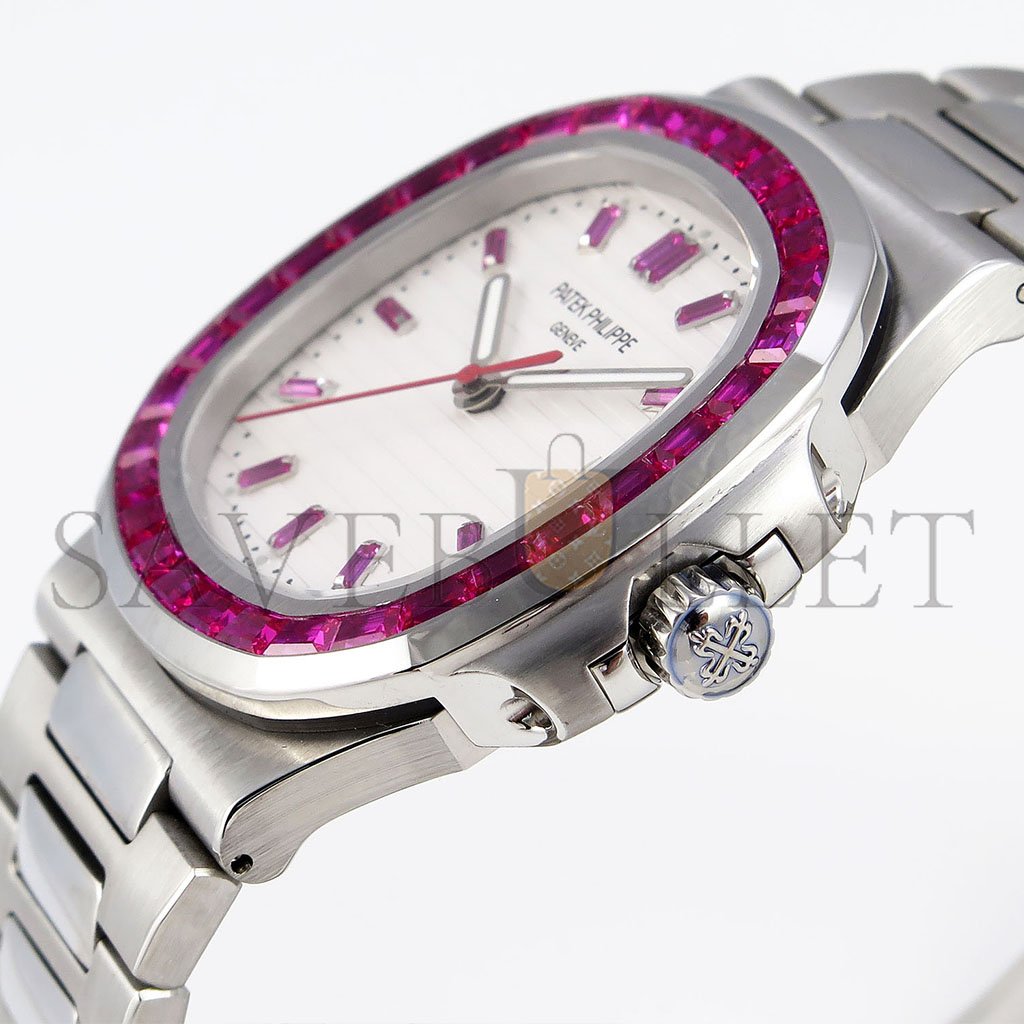 PATEK PHILIPPE NAUTILUS EDITION WHITE DIAL PURPLE DIAMONDS BEZEL ON WATCH 5711P