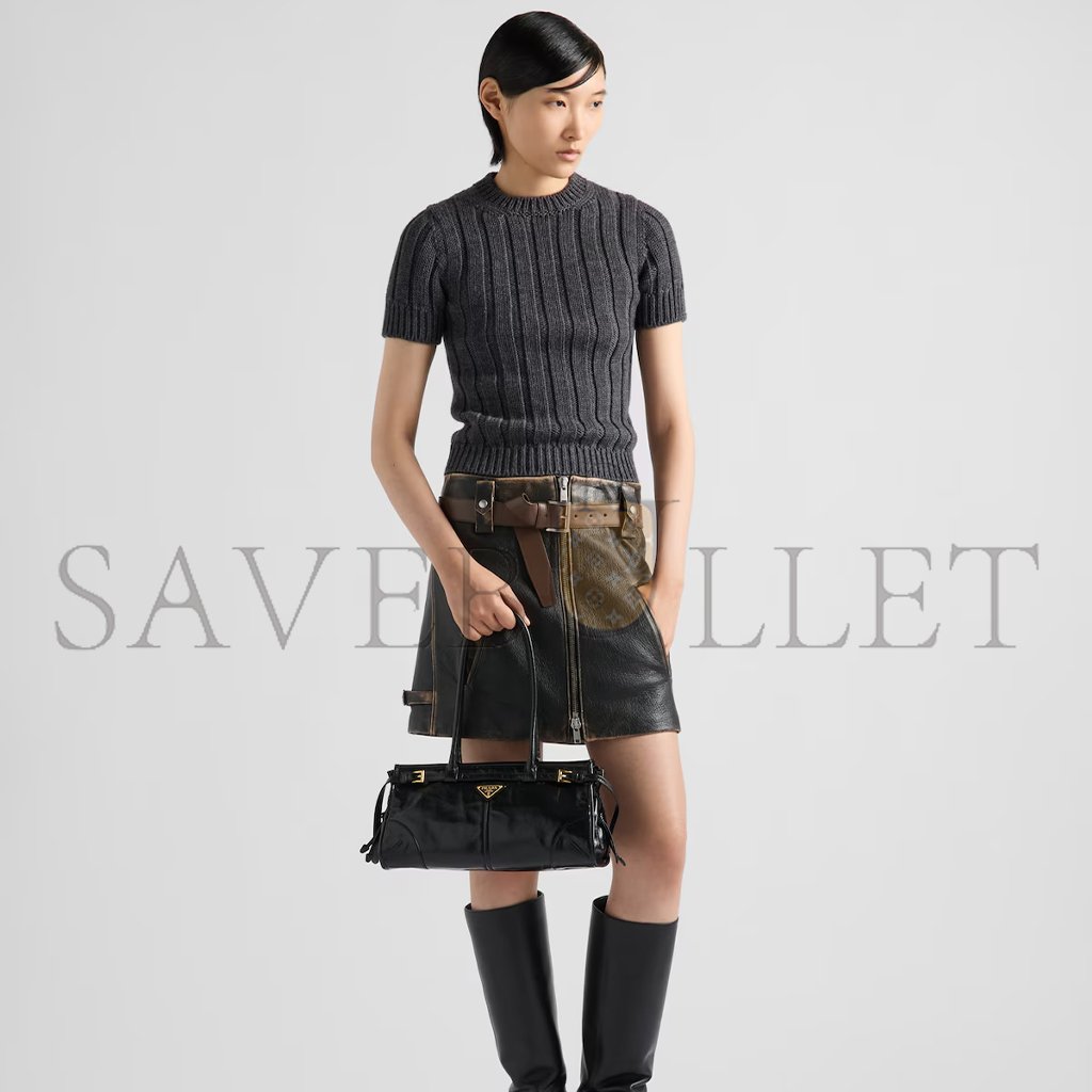 Nappa and nylon interior with center zipper compartment and zipper patch pocket