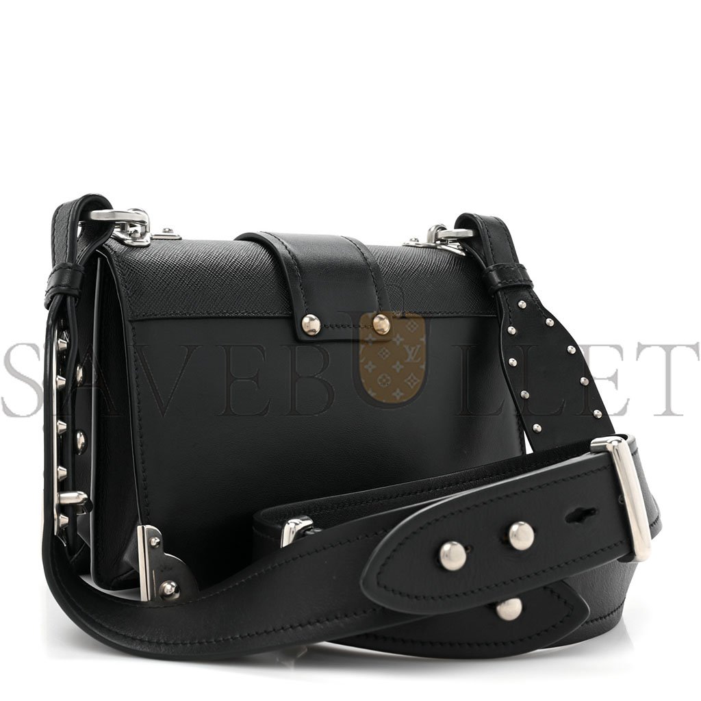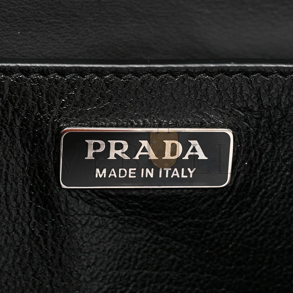This is an authentic PRADA City Calf Saffiano Cahier Bag in Black.�This stylish shoulder bag is crafted of calfskin leather in black. The bag features black textured leather on the top, an adjustable black leather shoulder strap, and silver hardware including corner plates and a closure. The top opens to a black leather interior with patch pockets.