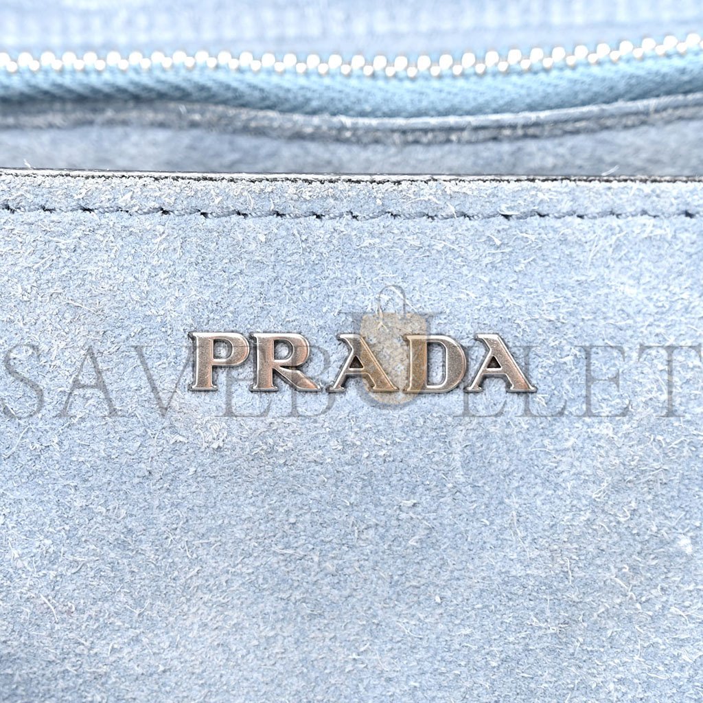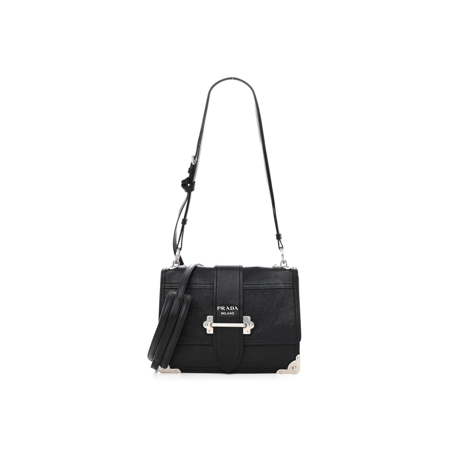 This is an authentic PRADA Glace Calfskin Large Soft Cahier Bag in Black.�This stylish shoulder bag is crafted of calfskin leather in black. The bag features an adjustable leather shoulder strap, an optional shoulder strap, and aged silver hardware including corner plates and a closure. The top opens to a blue suede leather interior with zipper and patch pockets.