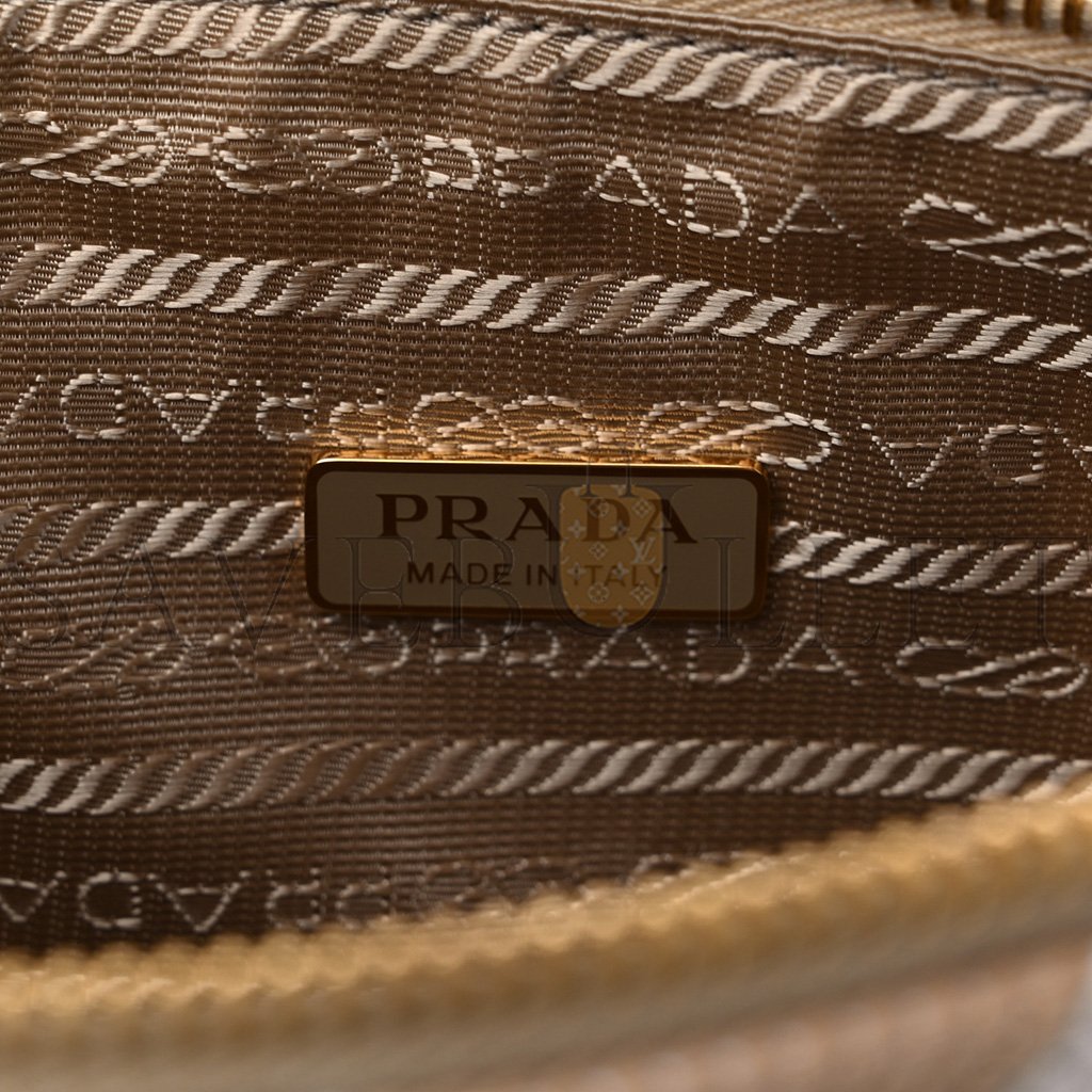 PRADA JACQUARD TRIANGOLO SYMBOLE EMBROIDERED MINI TRIANGLE SHOULDER BAG BEIGE CHALK WHITE (27*15*6cm)