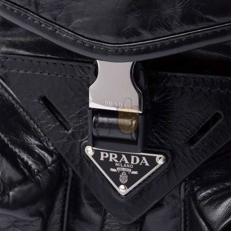 PRADA BRUSHED CALFSKIN MENS MEDIUM BRIQUE CROSSBODY BAG BLACK (22*17*6cm)
