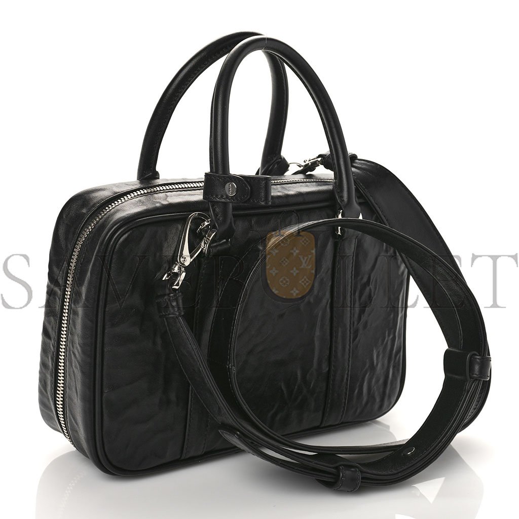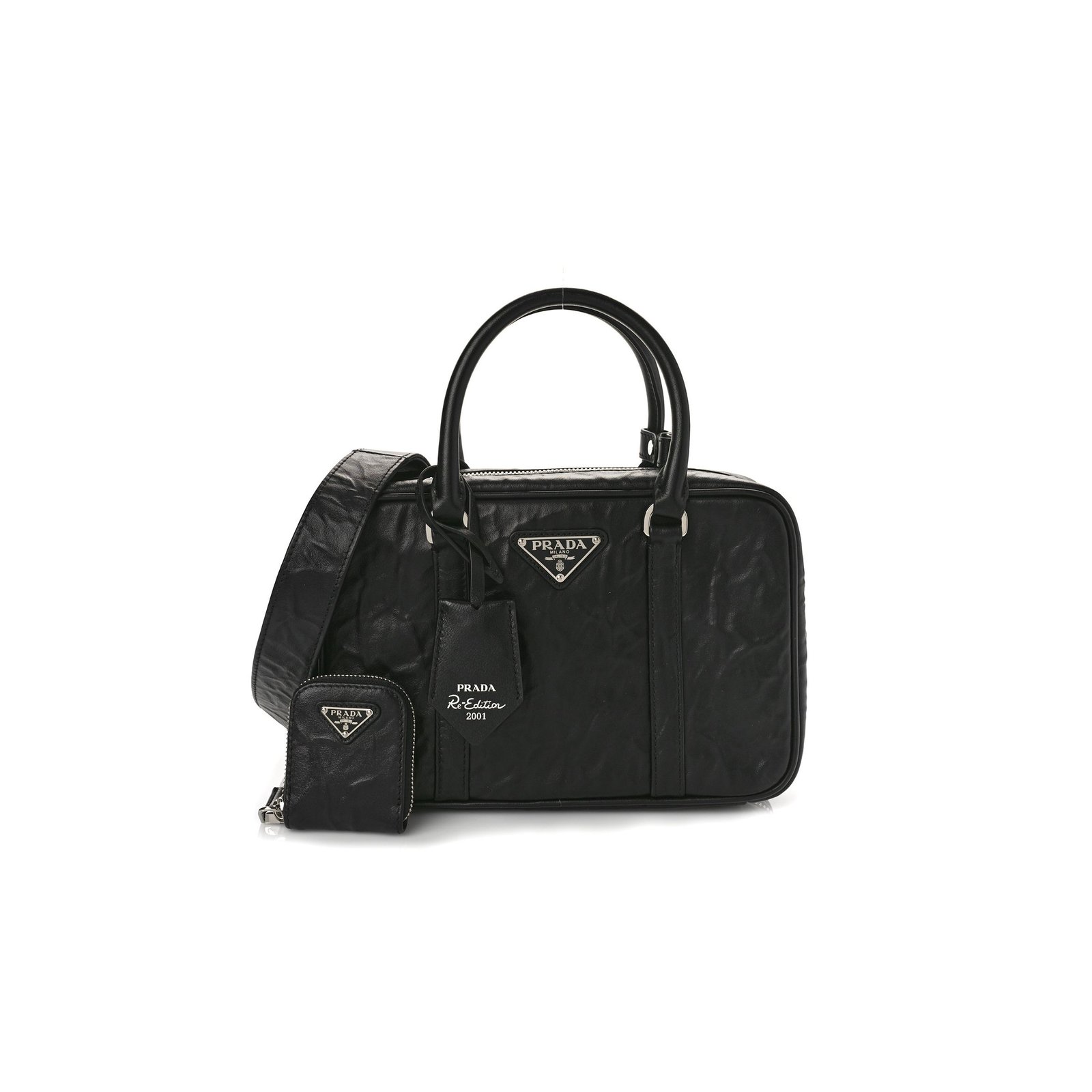 This is an authentic PRADA Nappa Antique Medium Top Handle Bag in Black. This is a chic Prada handbag that is beautifully crafted of calfskin leather in black. It features a polished black leather shoulder strap and a top zipper that opens to a leather interior with zipper and patch pockets.