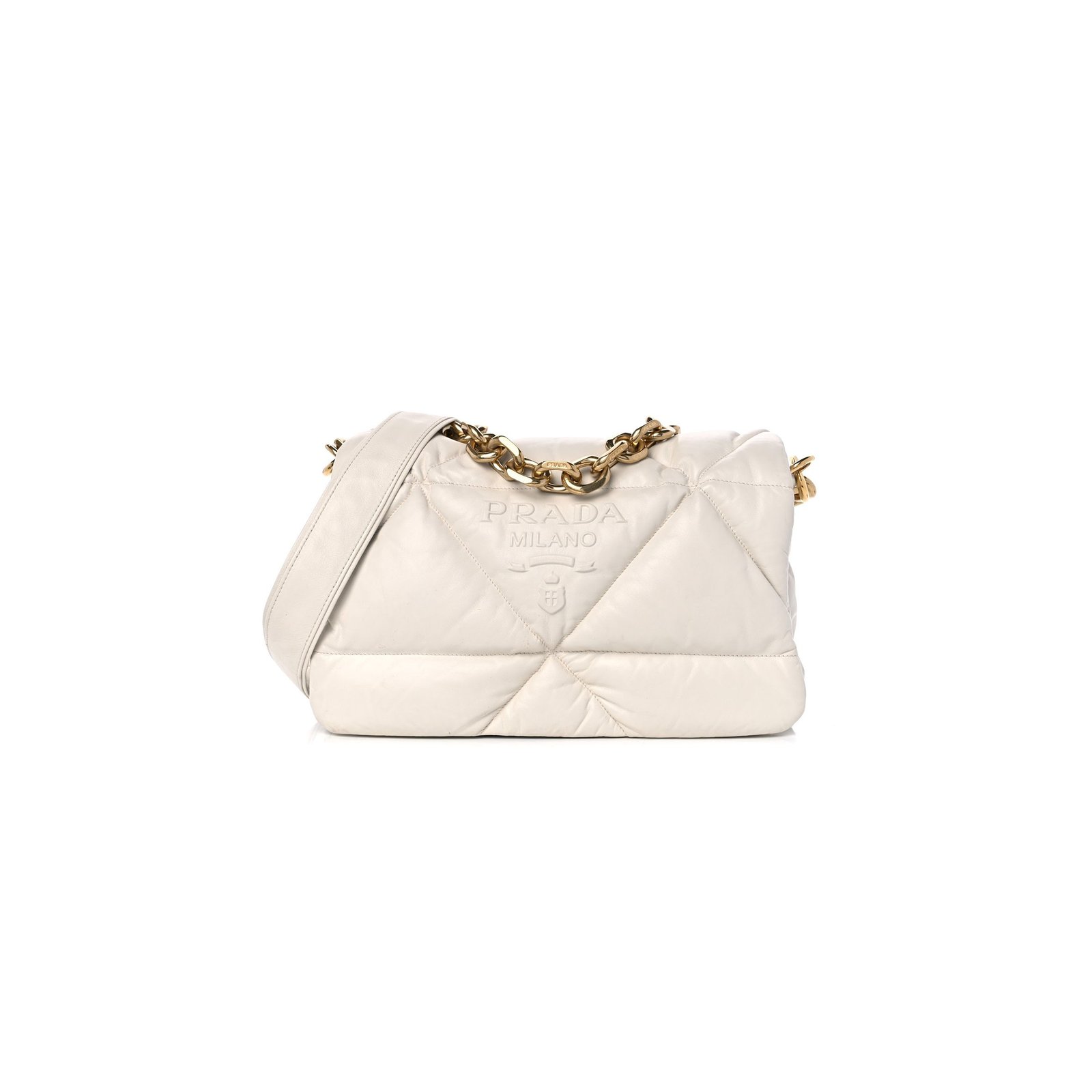 PRADA NAPPA PADDED SYSTEM PATCHWORK BAG WHITE (23*17*8cm)