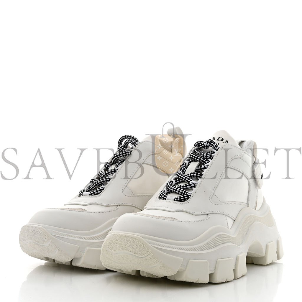 PRADA NYLON NEVADA CALFSKIN MENS PEGASSUS SNEAKERS 5 WHITE