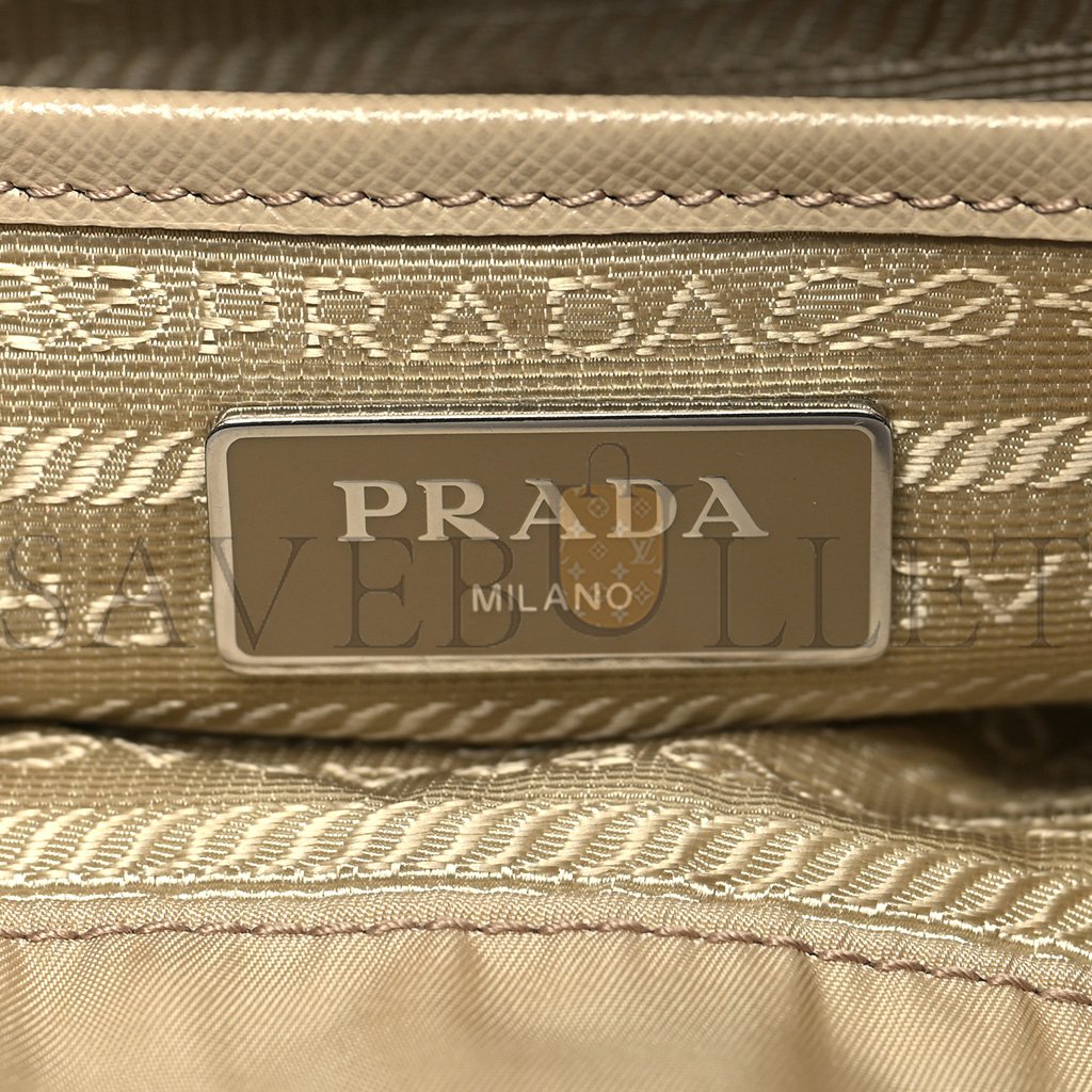 This is an authentic PRADA Nylon Saffiano Medium Backpack in Deserto. This backpack is crafted of fine nylon in beige. The shoulder bag features adjustable nylon shoulder straps with silver buckles, two external flap pockets, and a top cross-over flap with a strap and silver buckle closure. This opens to a nylon cinch cord and a Prada monogram jacquard fabric interior with a zipper pocket.