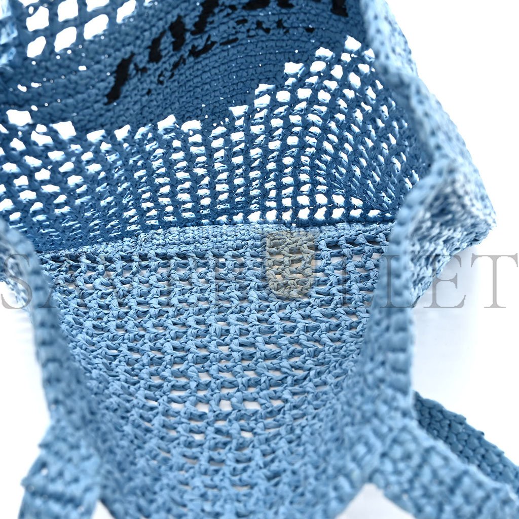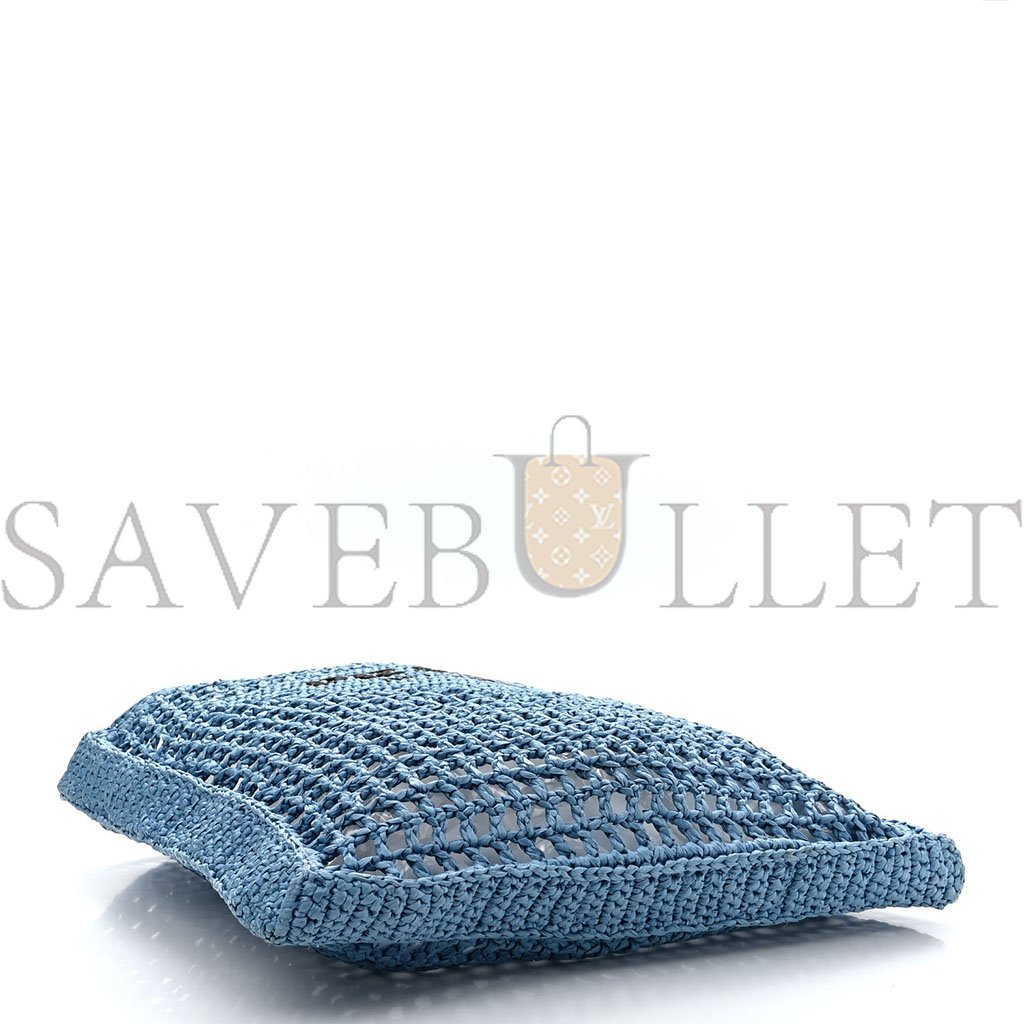 PRADA RAFFIA EMBROIDERED LOGO TOTE BAG CELESTE (36*36*4cm)