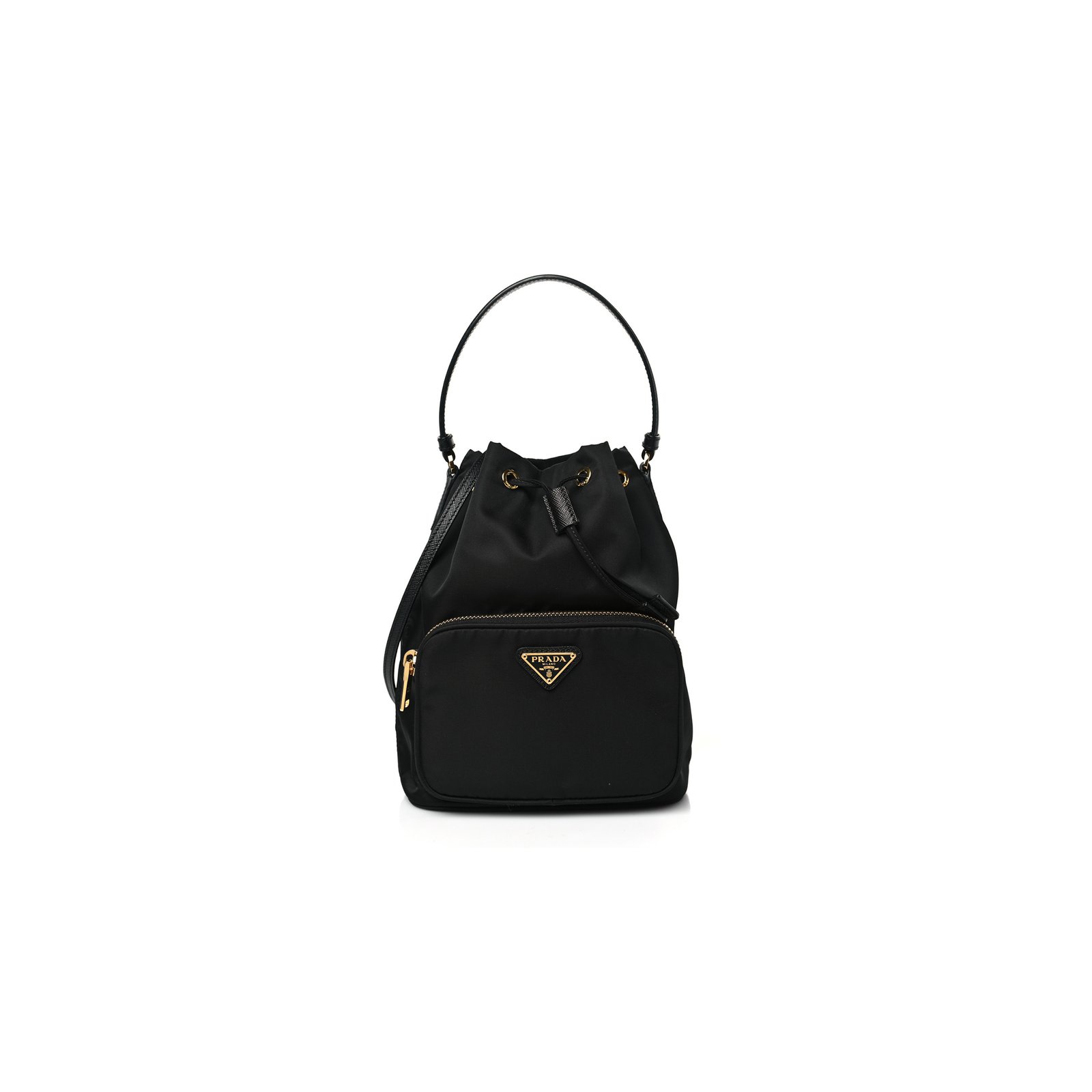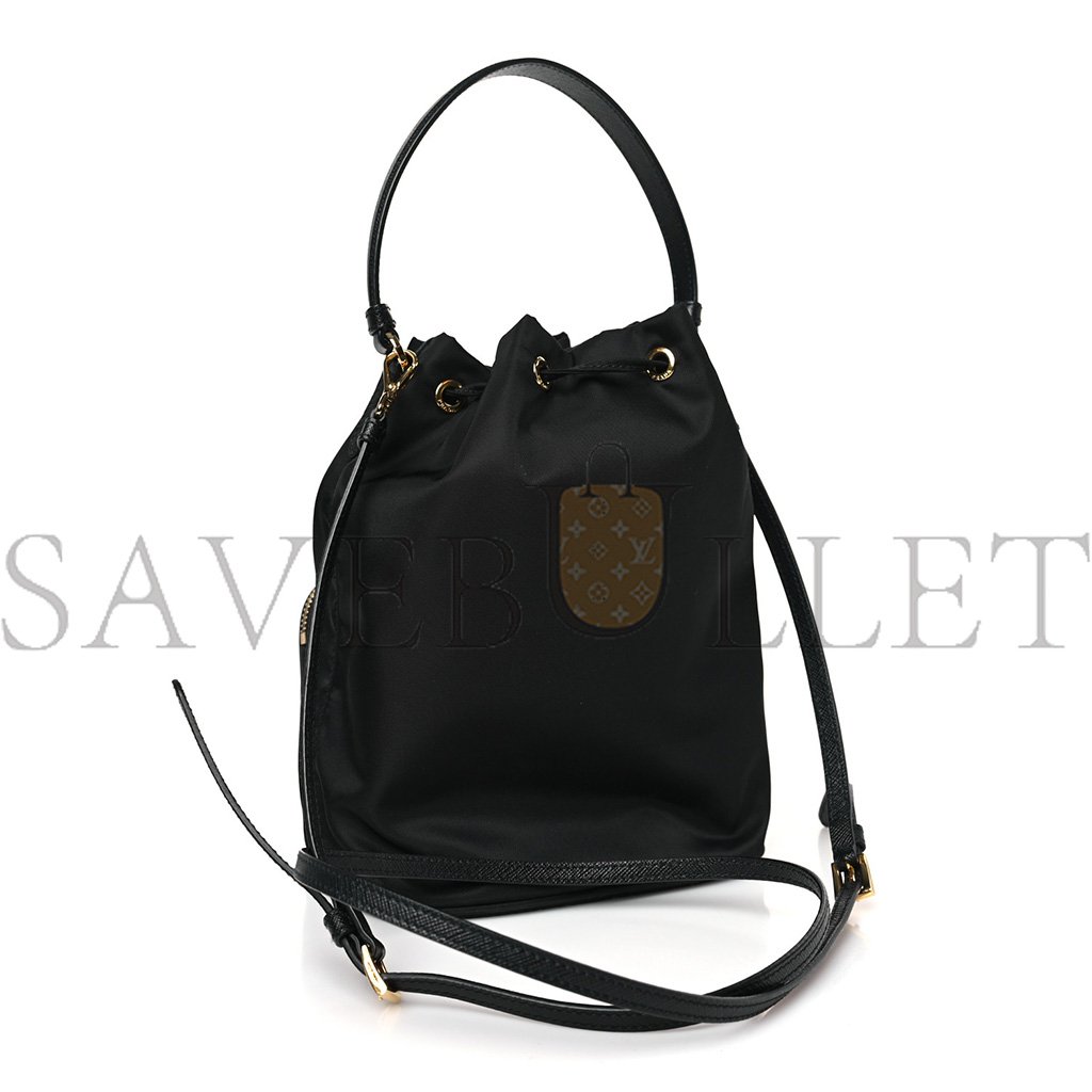 PRADA RE-NYLON DUET DRAWSTRING SHOULDER BAG BLACK (23*18*11cm)