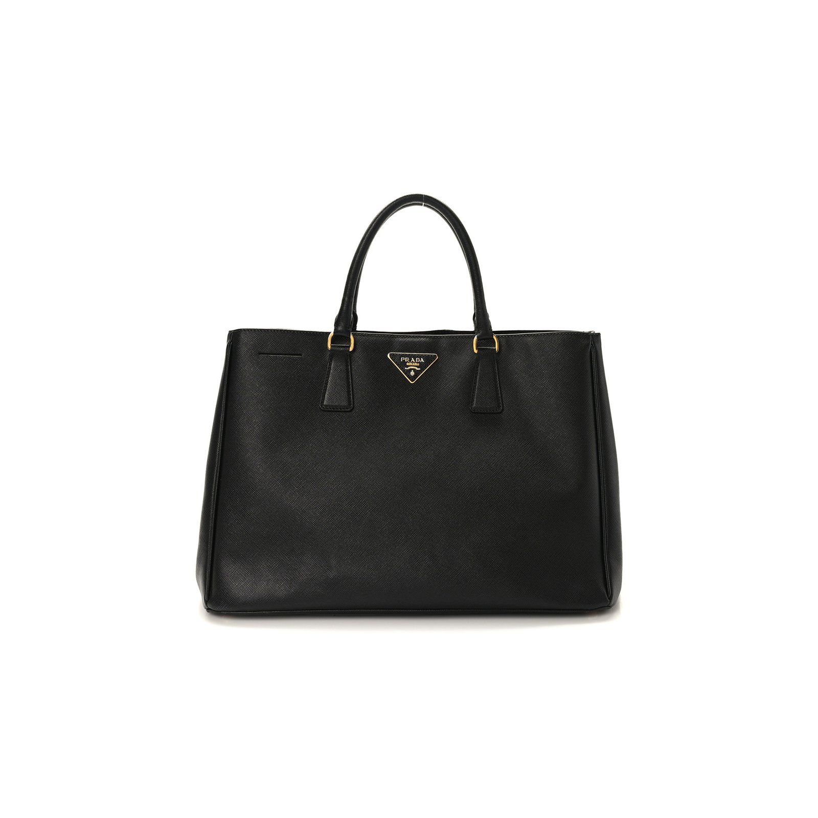 This is an authentic PRADA Saffiano Large Galleria Double Zip Tote in Black.�This chic tote is crafted of Saffiano cross-grain leather in black. The handbag features rolled leather top handles, and polished brass links with a hanging bag charm. The top is open and features two full-length side zippered compartments and a black Prada monogram jacquard interior.