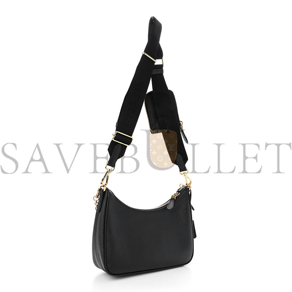 This is an authentic PRADA Saffiano Lux Re-Edition 2005 Shoulder Bag in Black. This chic shoulder bag is crafted of Prada signature saffiano crossgrain leather in black. The set features an adjustable black nylon shoulder strap, an optional gold chain-link strap, polished gold hardware, and a coin purse. The top zipper opens to a black Prada monogram jacquard fabric interior.
