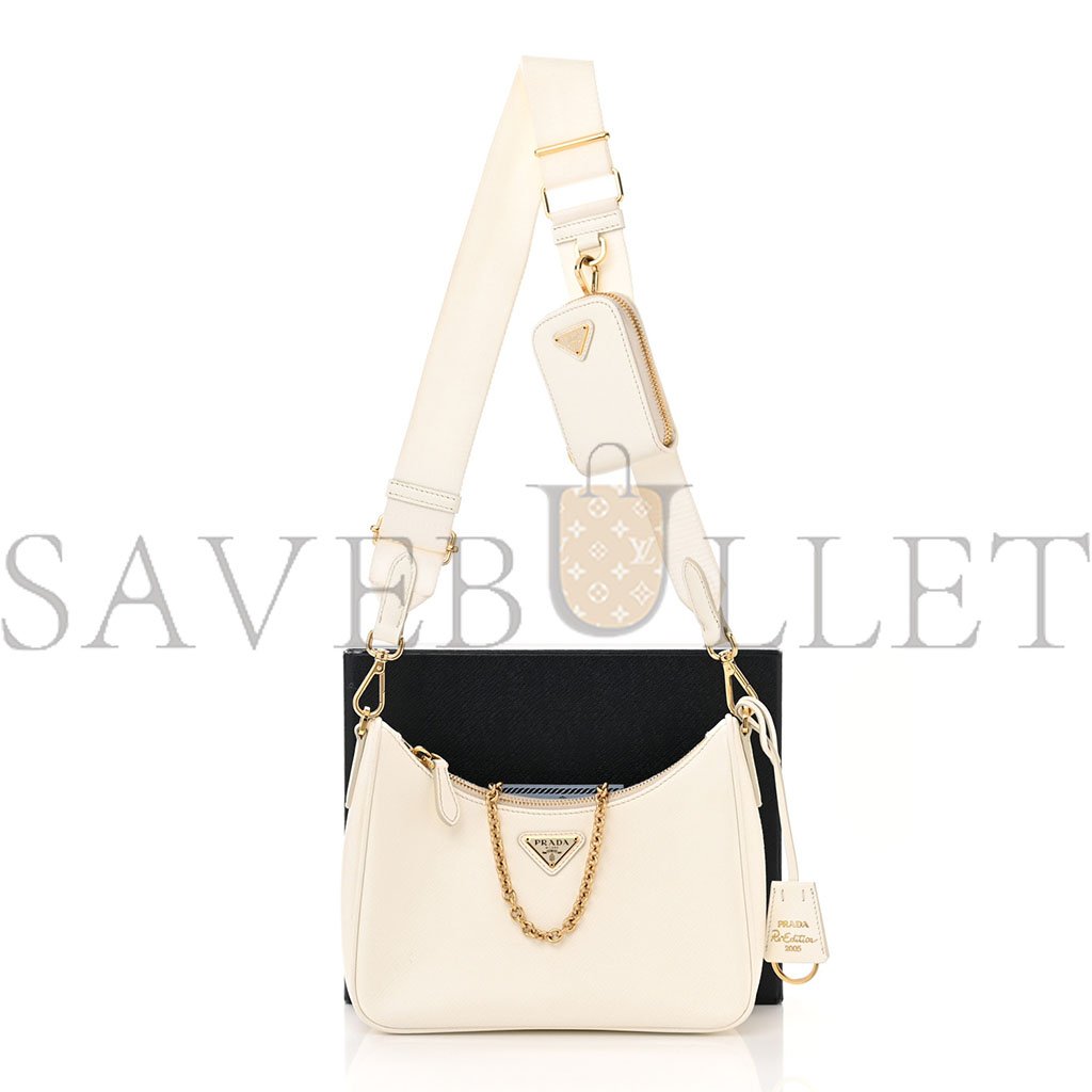 PRADA SAFFIANO RE-EDITION 2005 SHOULDER BAG WHITE (23*17*6cm)
