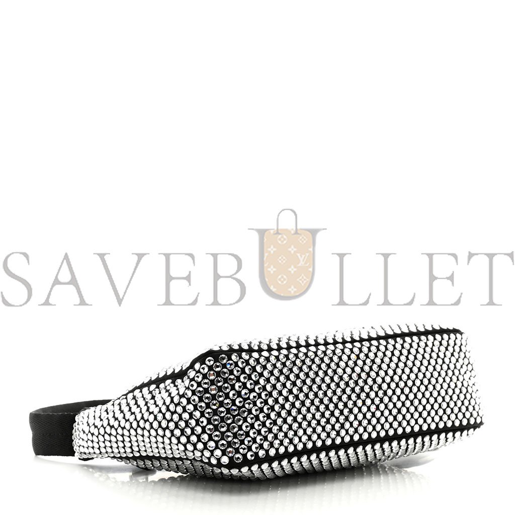 This is an authentic PRADA Satin Crystal Mini Re-Edition 2000 Bag in Black. This Prada handbag is crafted of crystal embellished satin with silver hardware. The bag features a black nylon shoulder strap and the top zipper opens to a black fabric interior.