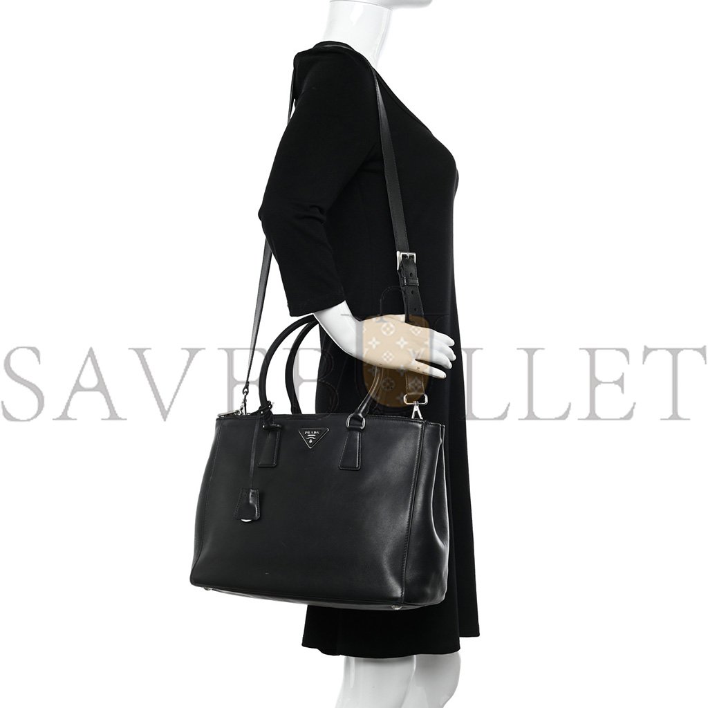 PRADA BRUSHED CALFSKIN MENS MEDIUM BRIQUE CROSSBODY BAG BLACK (22*17*6cm)