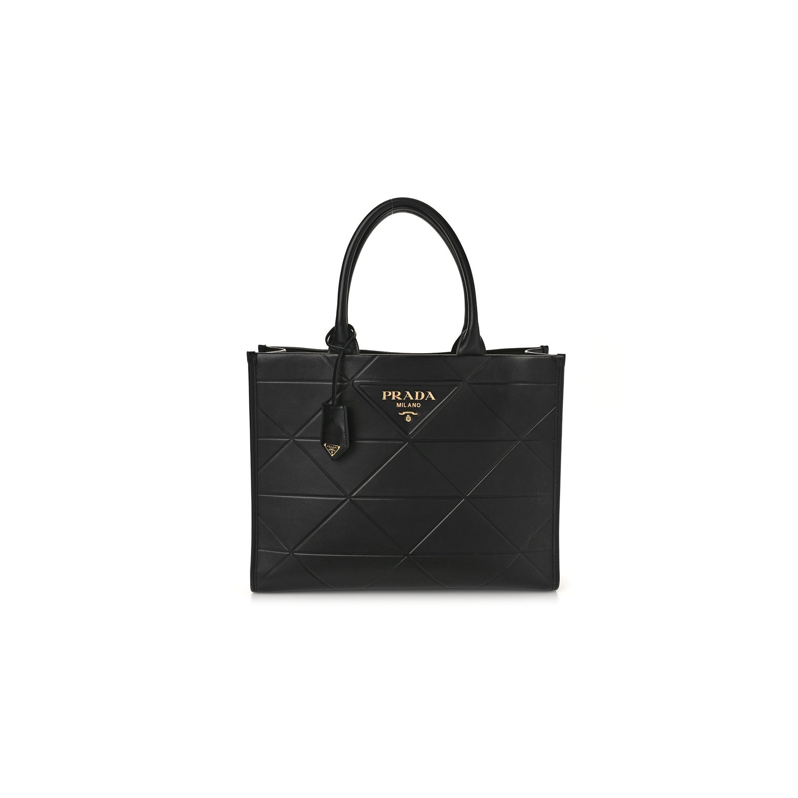 PRADA SOFT CALFSKIN TRIANGOLO SYMBOLE EMBOSSED MEDIUM TOTE BLACK (35*27*11cm)