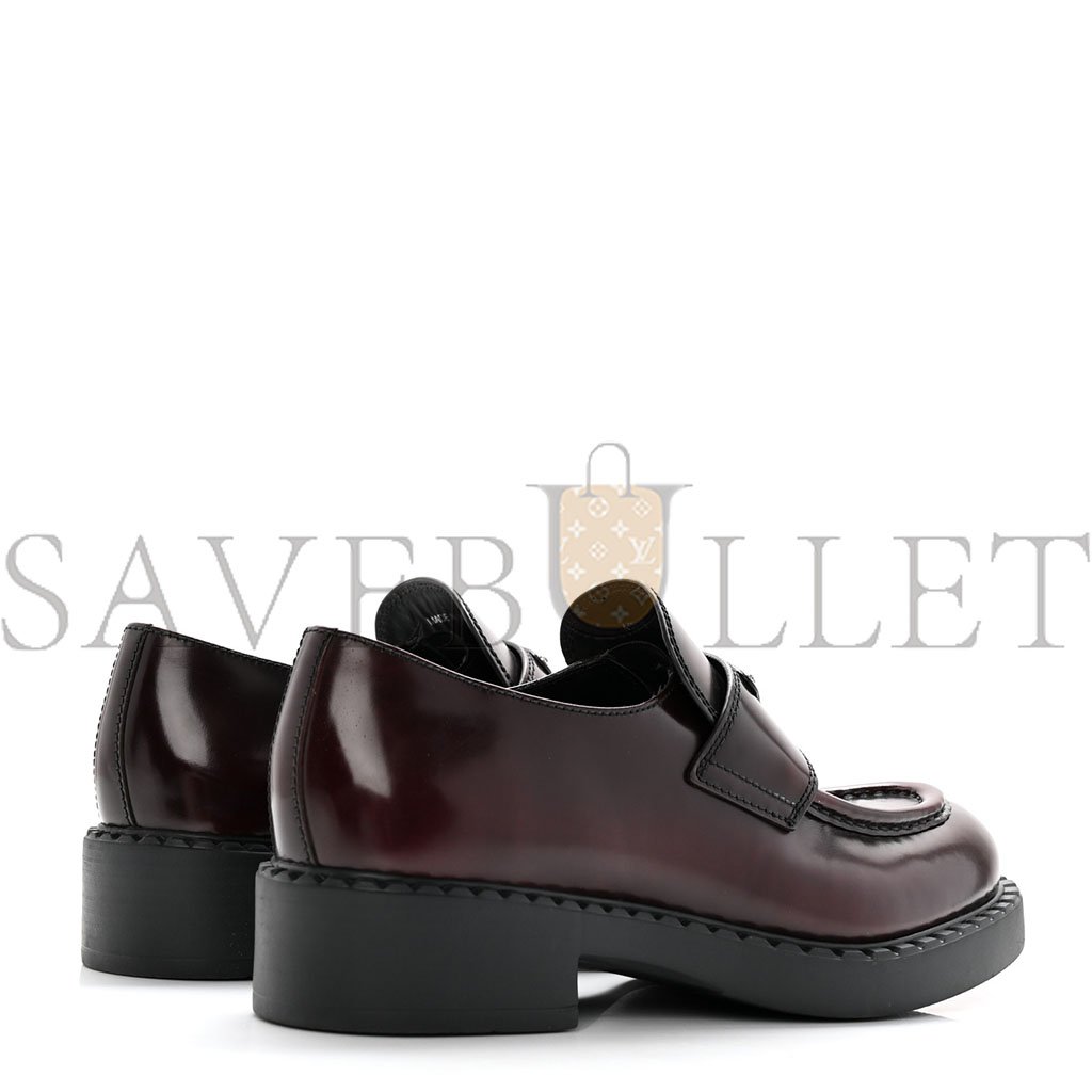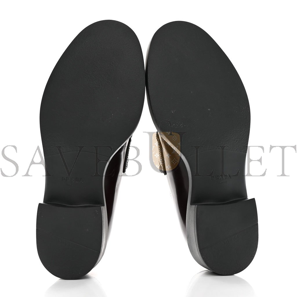 PRADA SPAZZOLATO METAL TRIANGLE LOGO 50MM LOAFERS 39 BRUCIATIO FUME