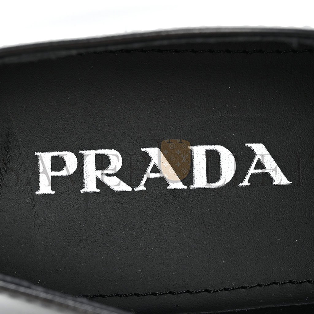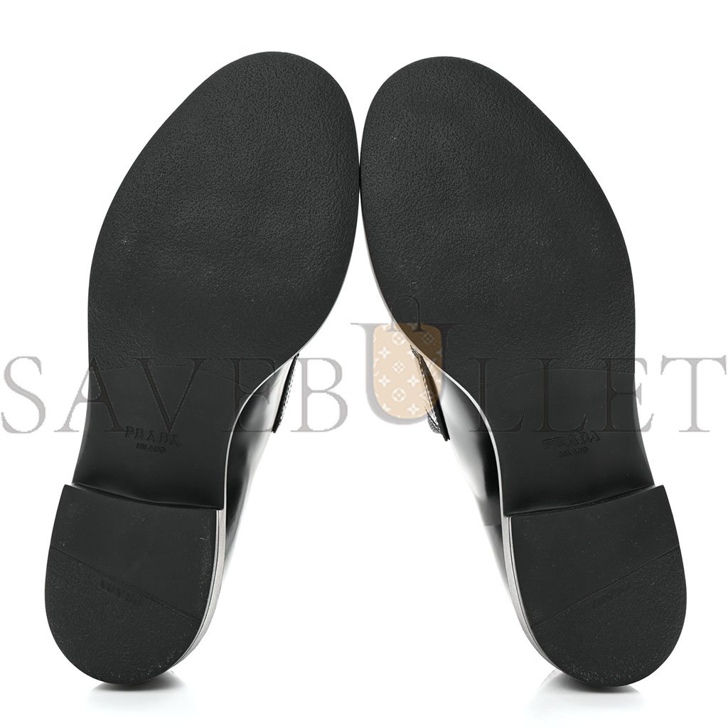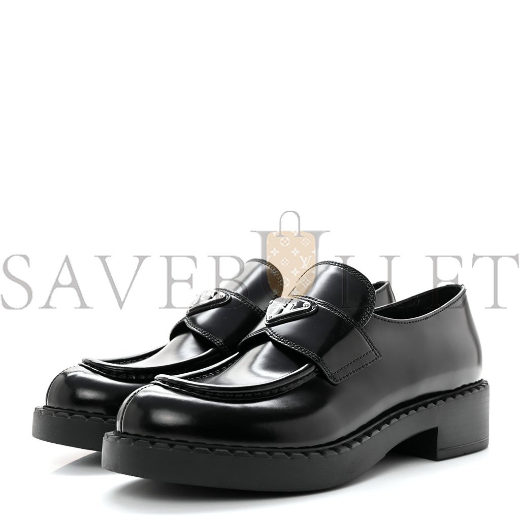 $259.00PRADA SPAZZOLATO ROIS METAL TRIANGLE LOGO MENS MONOLITH 55MM LOAFERS 6 BLACK