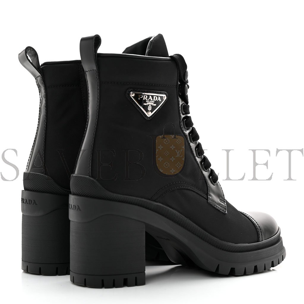 PRADA SPAZZOLATO RE-NYLON METAL TRIANGLE LOGO LACE UP 55MM ANKLE BOOTS 36.5 BLACK