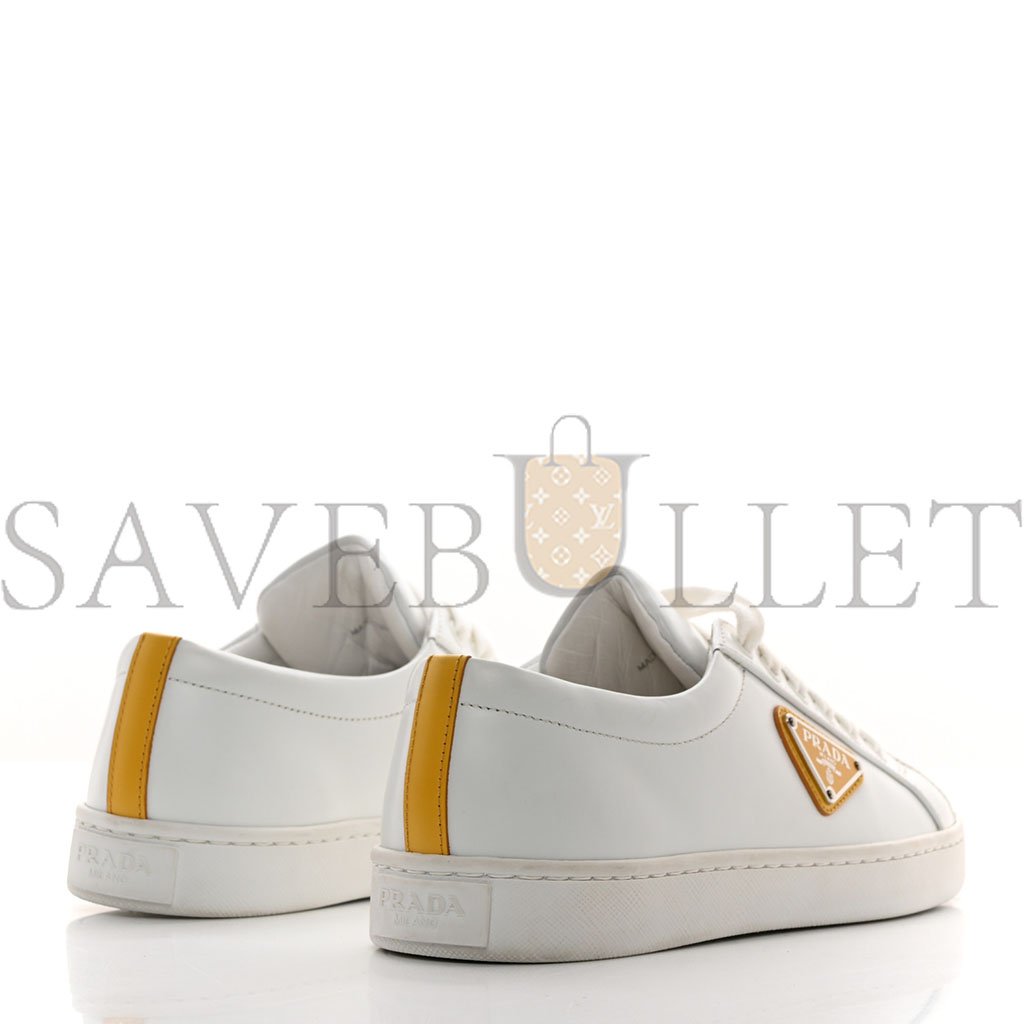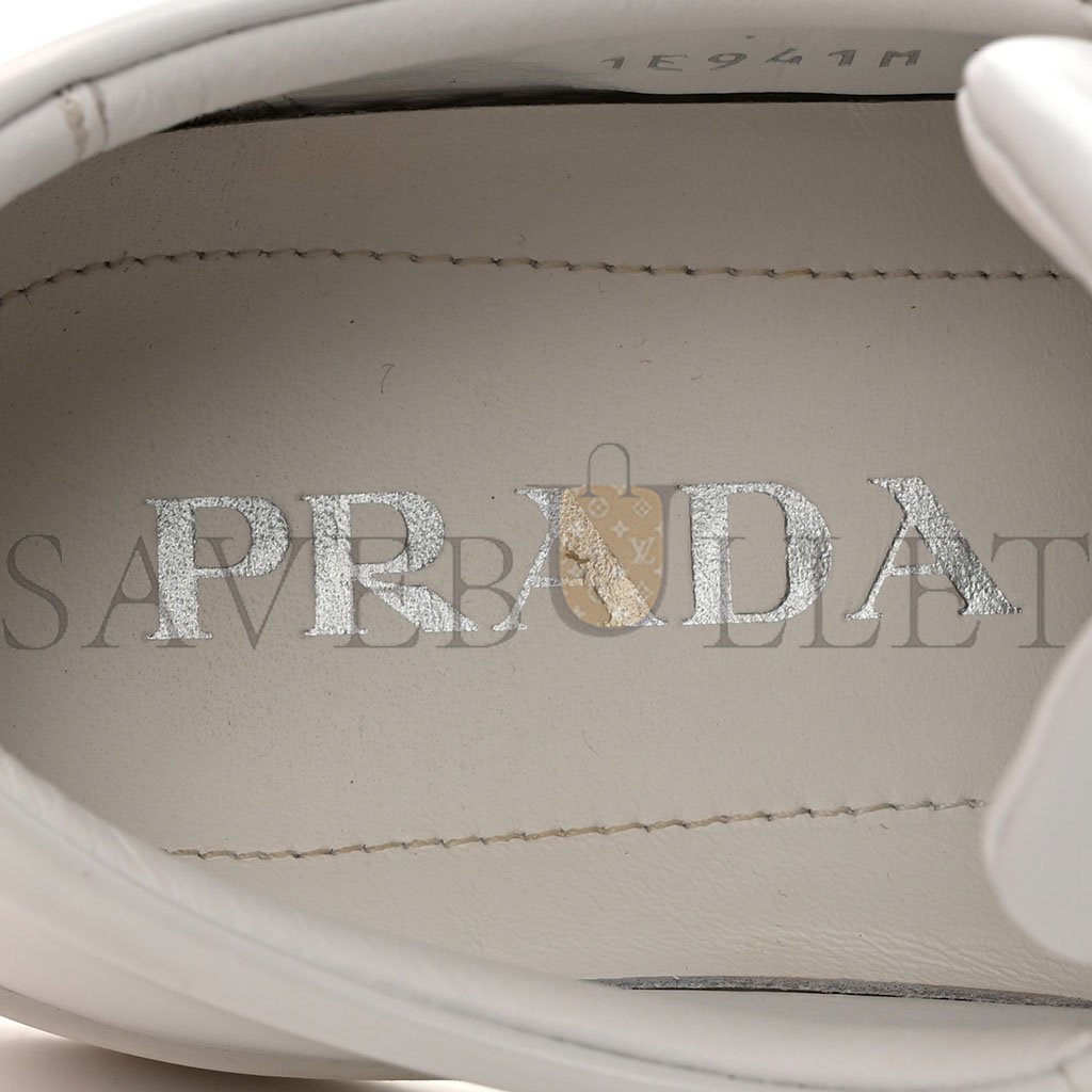PRADA SPAZZOLATO ROIS METAL TRIANGLE LOGO 25MM SNEAKERS 35.5 WHITE SOLEIL
