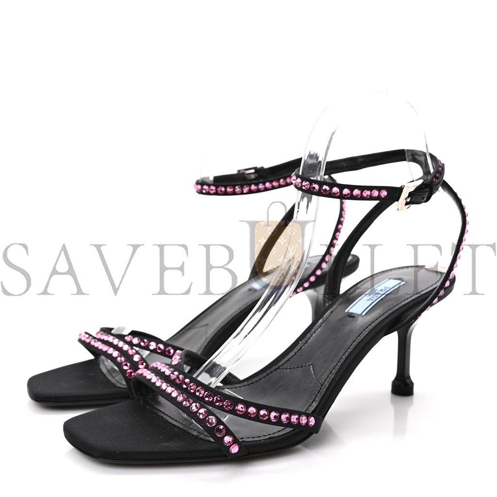 PRADA SUEDE CRYSTAL ANKLE STRAP 65MM SANDALS 40 ROSA