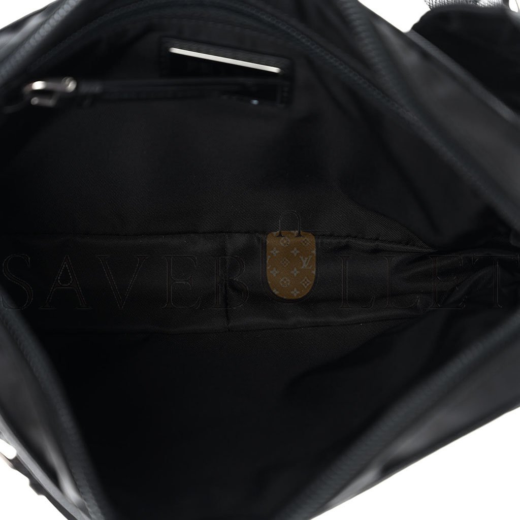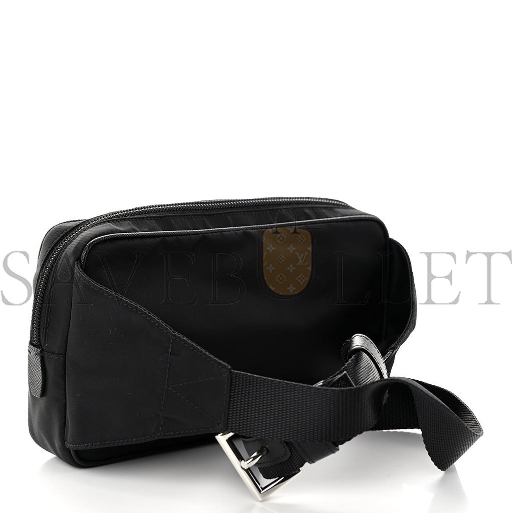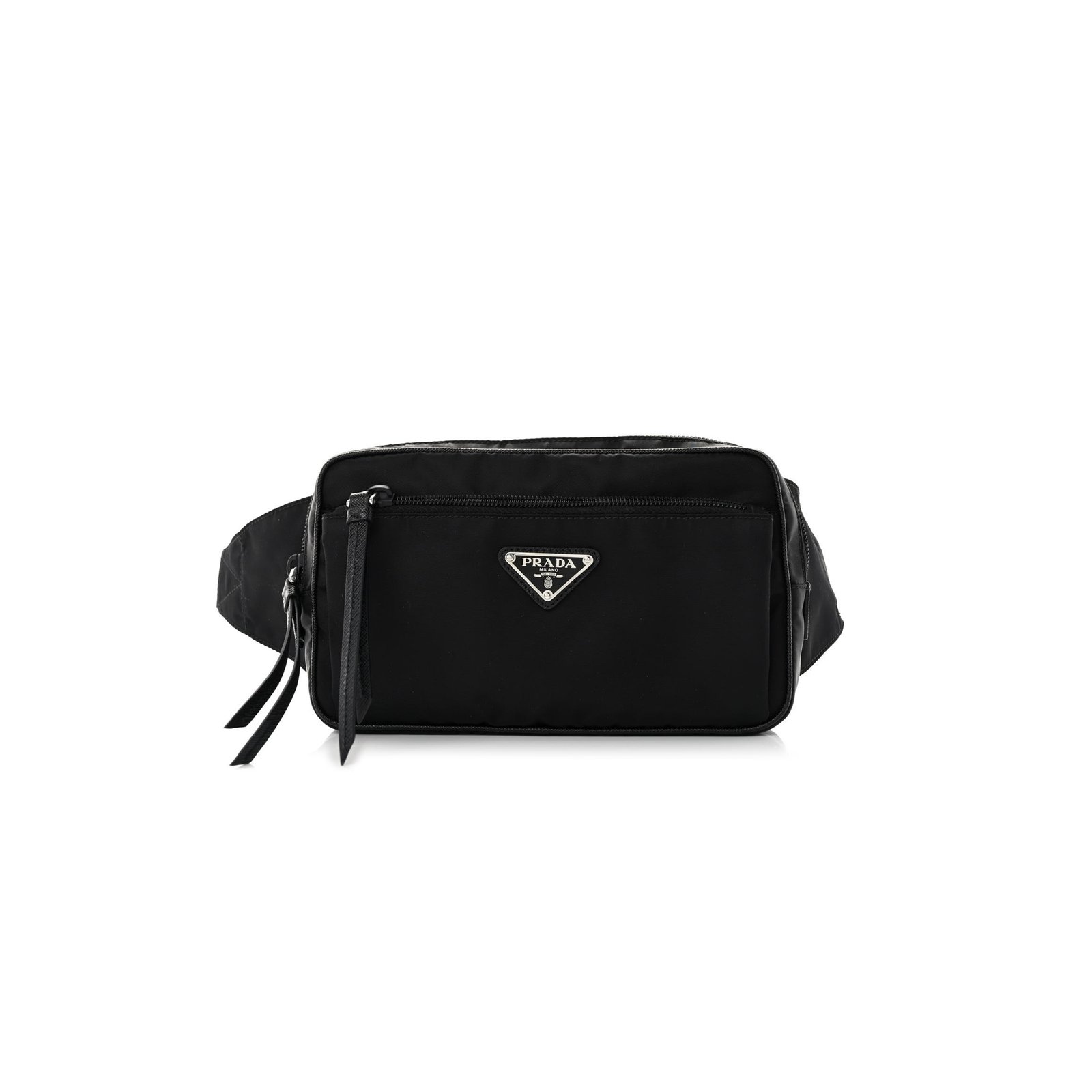 This is an authentic PRADA Tessuto Nylon Belt Bag in Black. This chic belt bag is crafted of technical nylon fabric in black. The bag features a long zipper pocket, a front pocket, and a nylon strap with polished silver hardware. The top zipper opens to a black fabric interior with a zipper pocket.