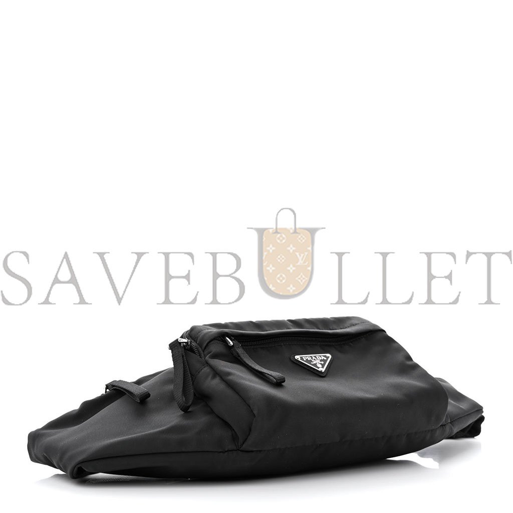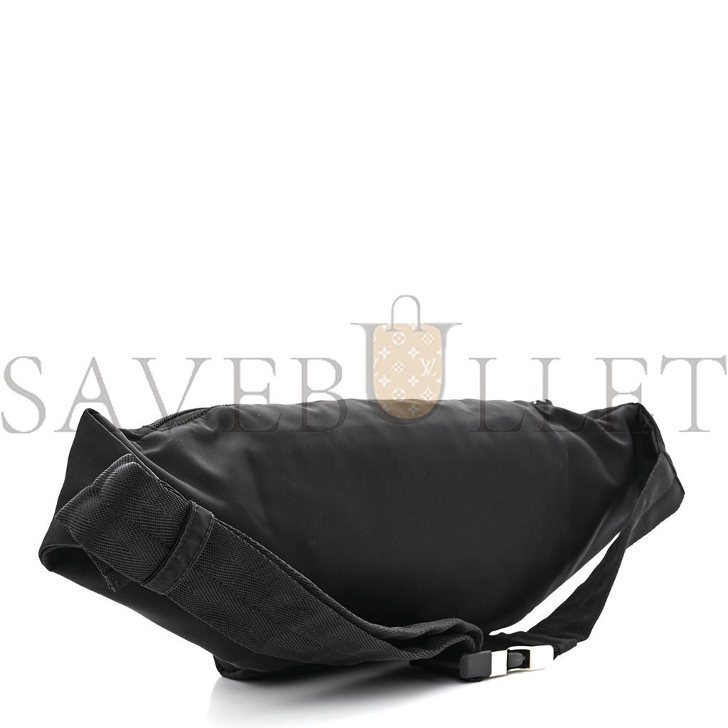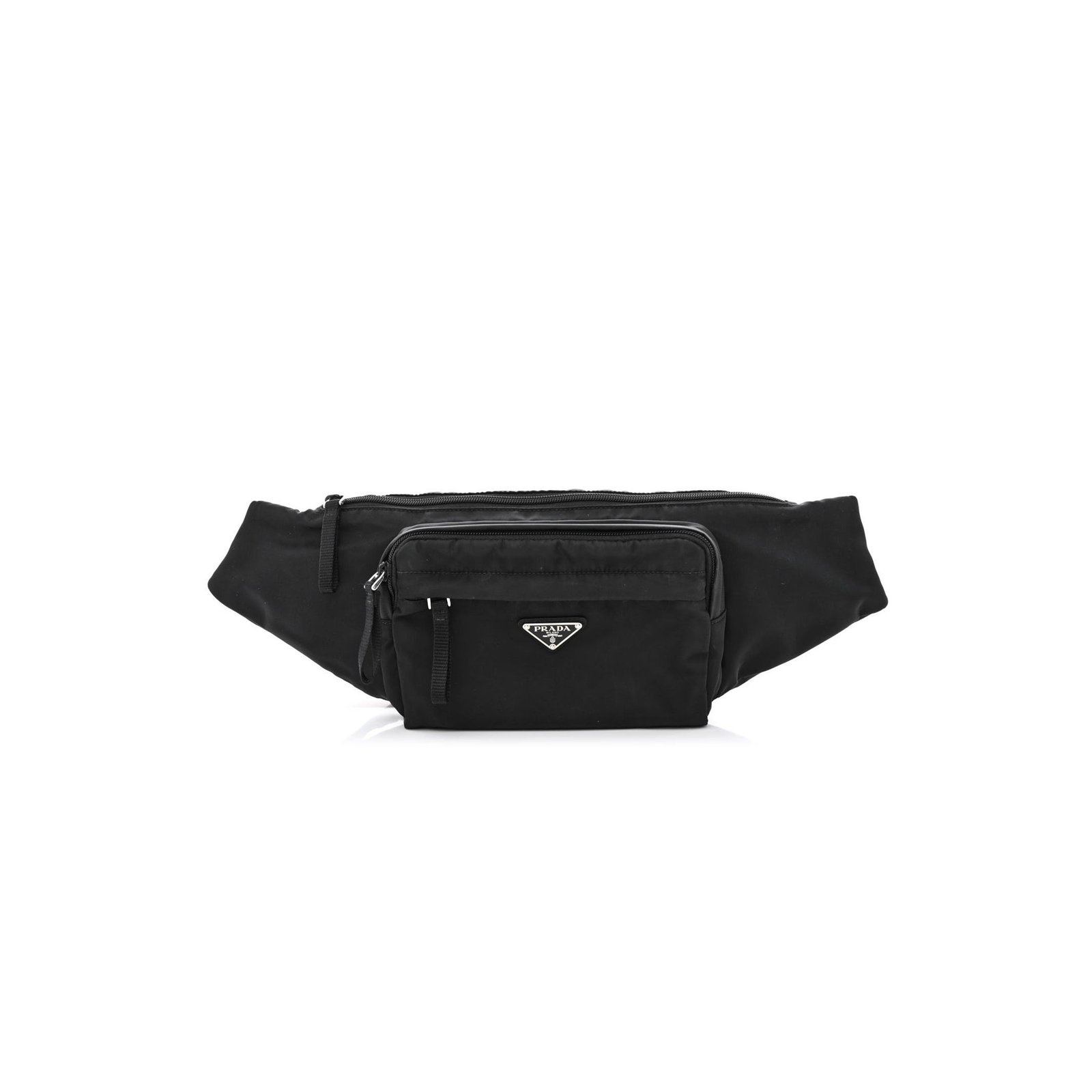 This is an authentic PRADA Tessuto Nylon Belt Bag in Black. This chic belt bag is crafted of technical nylon fabric in black. The bag features a long zipper pocket, a front pocket, and nylon strap with polished silver hardware. The top zipper opens to a black fabric interior with a zipper pocket.