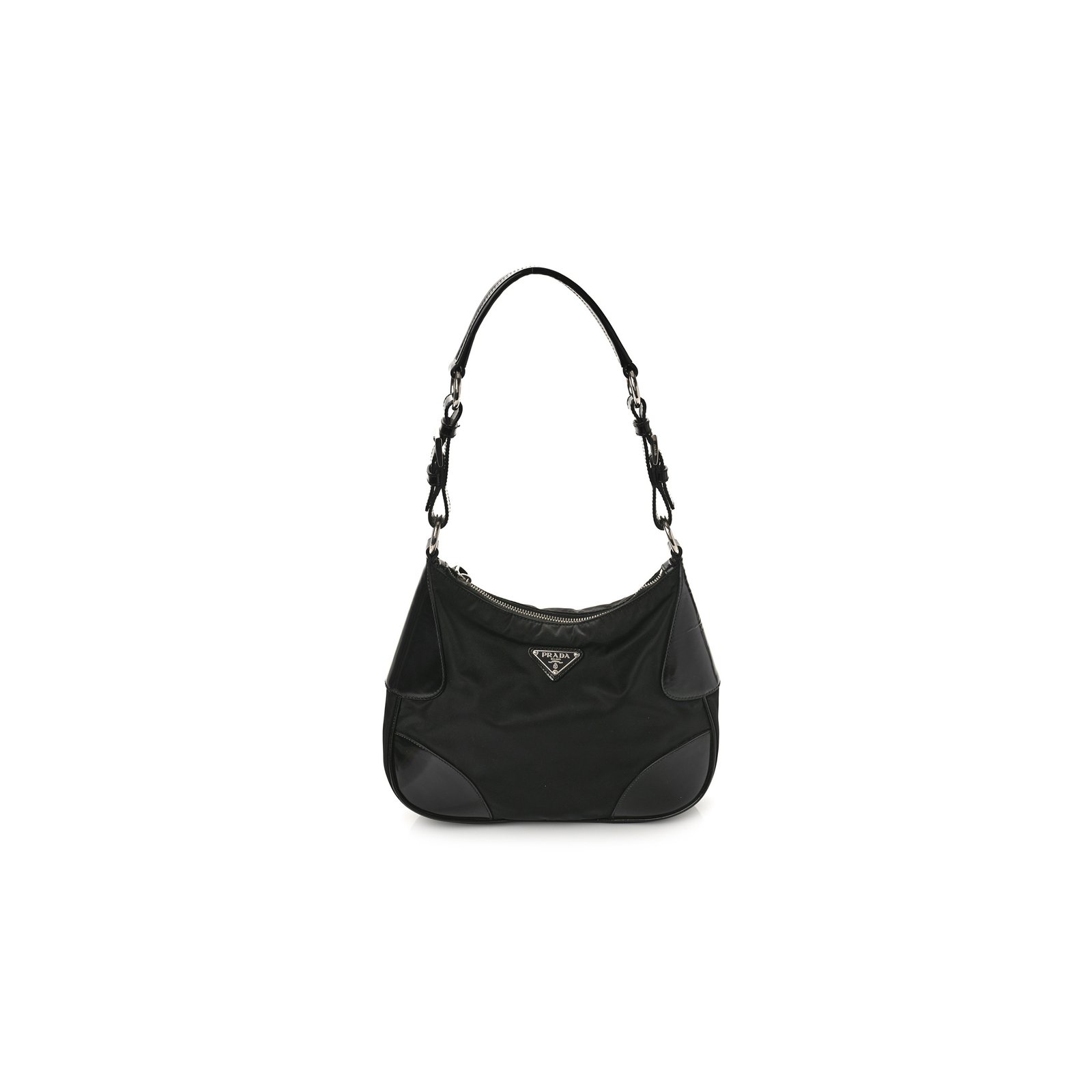 PRADA TESSUTO NYLON VITELLO HOBO NERO BLACK (31*23*11cm)