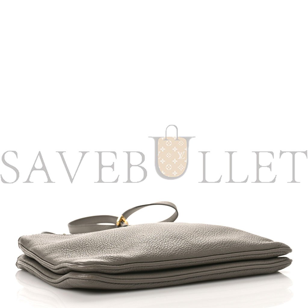 This is an authentic PRADA Vitello Phenix Double Zip Crossbody Bag in Argilla. This stunning crossbody bag is finely crafted of textured gray calfskin leather. The bag features an adjustable crossbody strap with silver hardware. The top has two zipper compartments that open to black Prada monogram interiors with zipper and patch pockets.