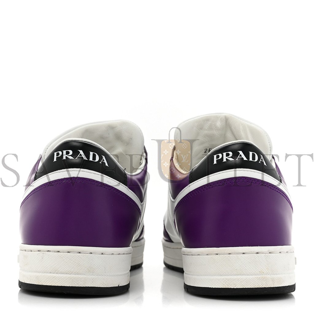 PRADA VITELLO ROIS METAL TRIANGLE LOGO MENS DOWNTOWN LOW TOP SNEAKERS 8 WHITE CICLAMINO