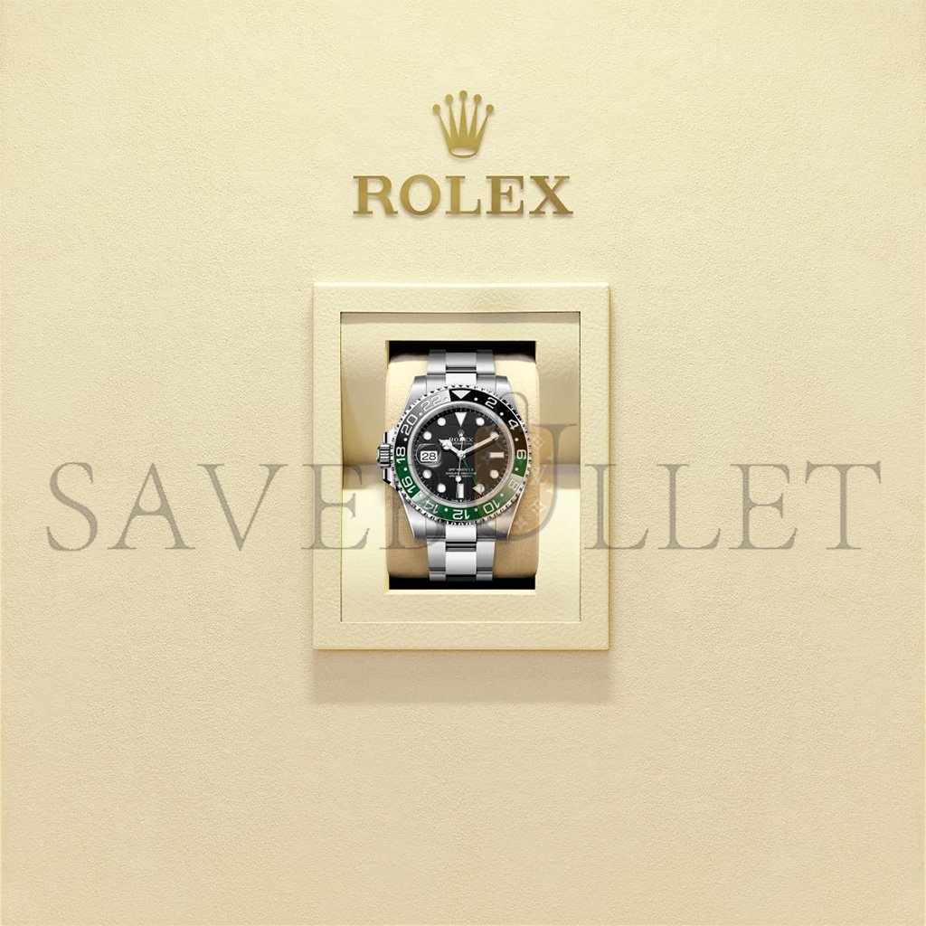 Bidirectional rotatable 24-hour graduated bezel. Two-colour green and black Cerachrom insert in ceramic, moulded numerals and graduations