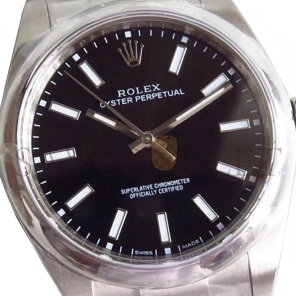 ROLEX OYSTER PERPETUAL SERIES BLACK FACE MECHANICAL 39MM WATCH 114300-0005