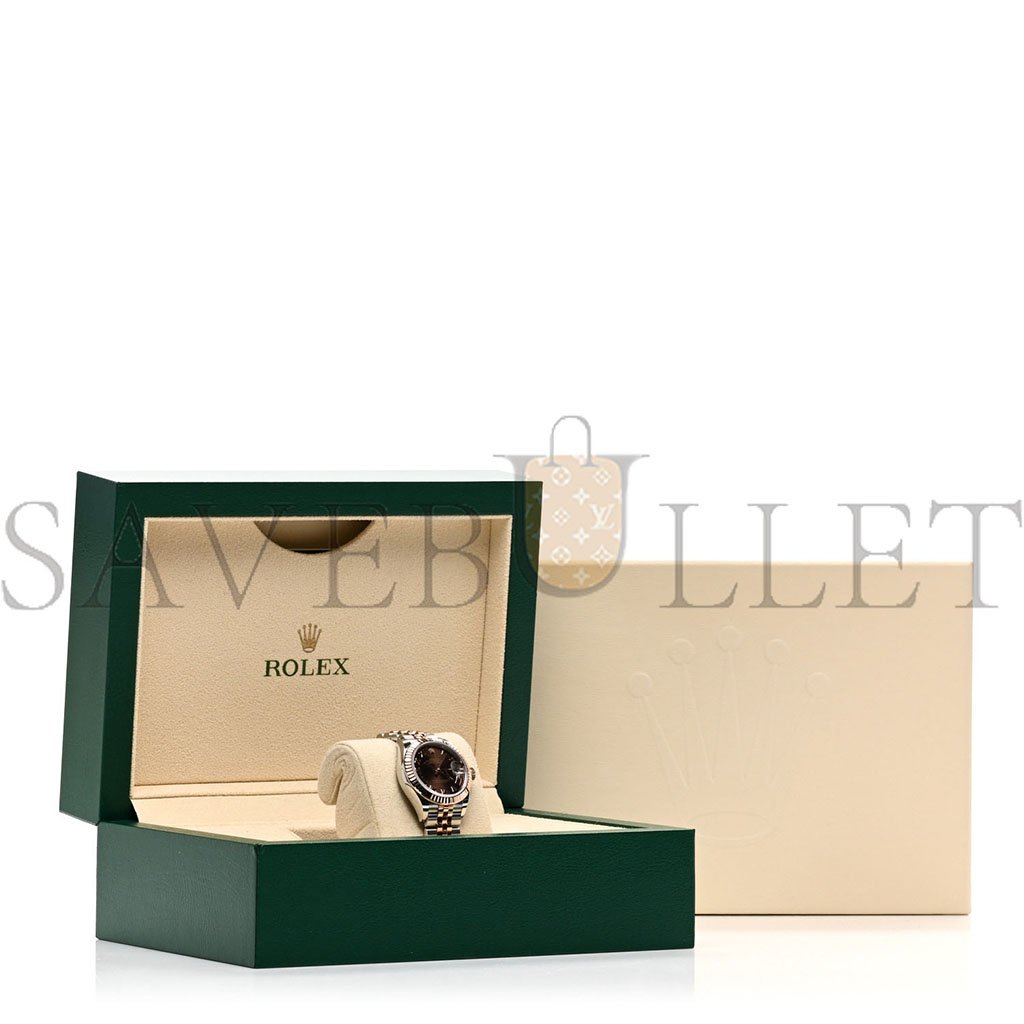 ROLEX STAINLESS STEEL 18K EVEROSE GOLD 28MM OYSTER PERPETUAL DATEJUST WATCH CHOCOLATE ROMAN 279171