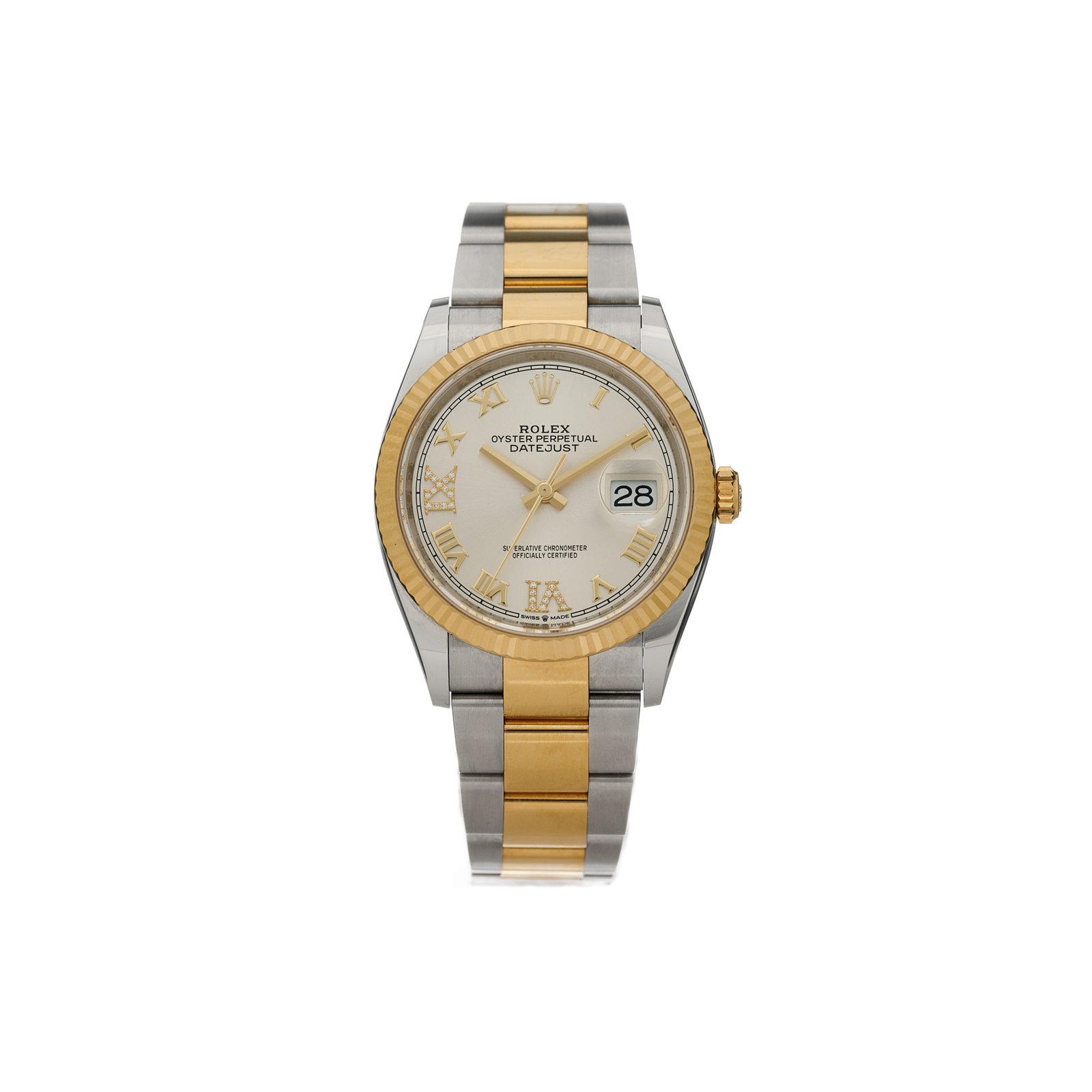 ROLEX STAINLESS STEEL 18K YELLOW GOLD DIAMOND 36MM OYSTER PERPETUAL DATEJUST WATCH SILVER ROMAN 126233