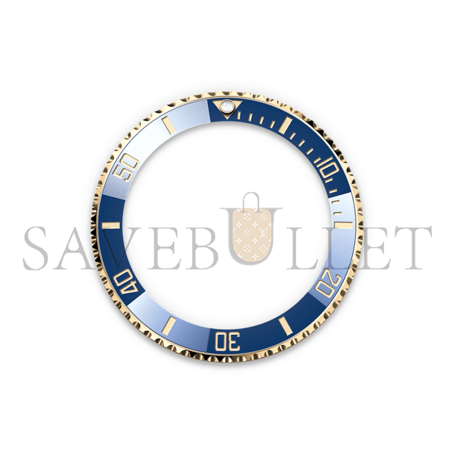 Unidirectional rotatable 60-minute graduated, scratch-resistant Cerachrom insert in blue ceramic, numerals and graduations coated in gold