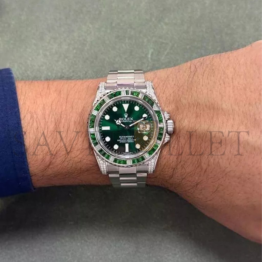 Be the first to review “ROLEX SUBMARINER DATE STEEL GREEN STONES & DIAMOND 40MM WATCH 116610” Cancel reply
