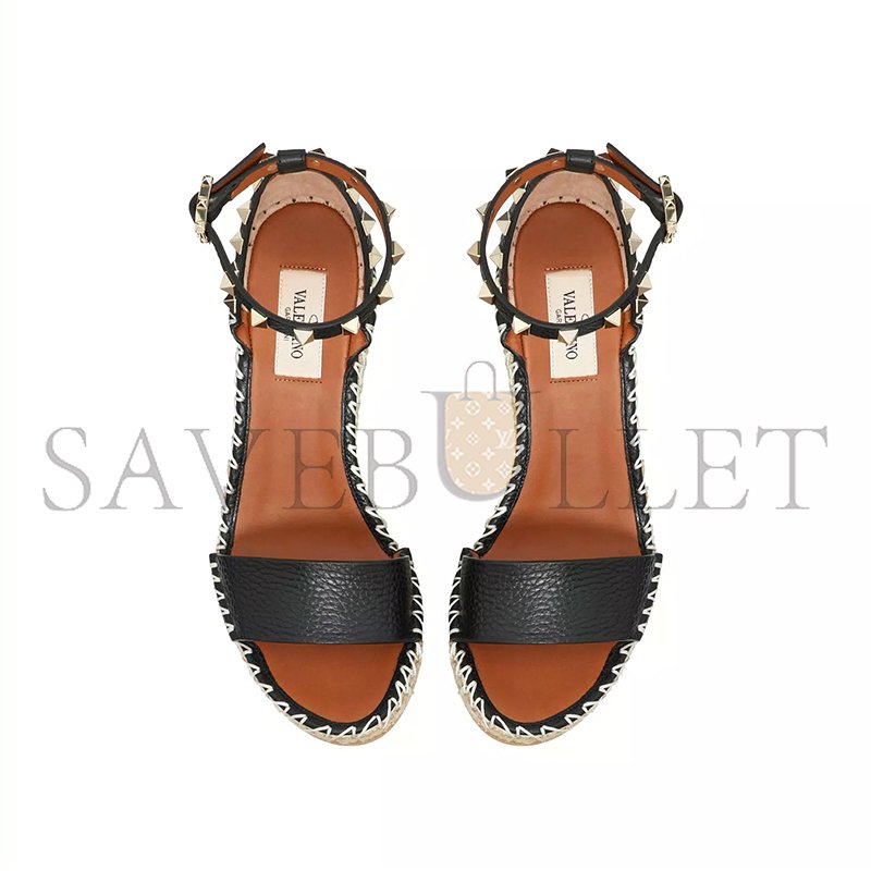 VALENTINO DOUBLE ROCKSTUD GRAINY CALFSKIN WEDGE SANDAL 105MM 5W2S0090VTO_N02