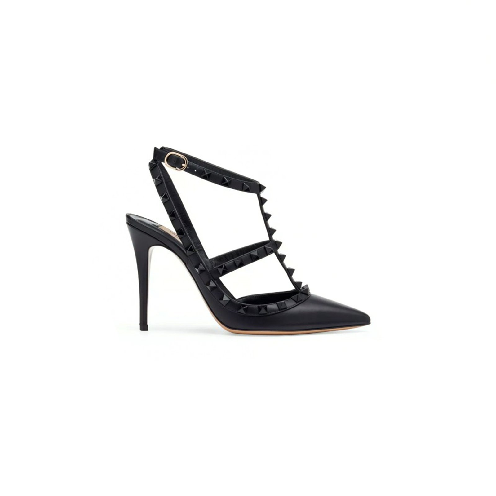 Valentino Garavani Rockstud ankle strap pump in calfskin leather.